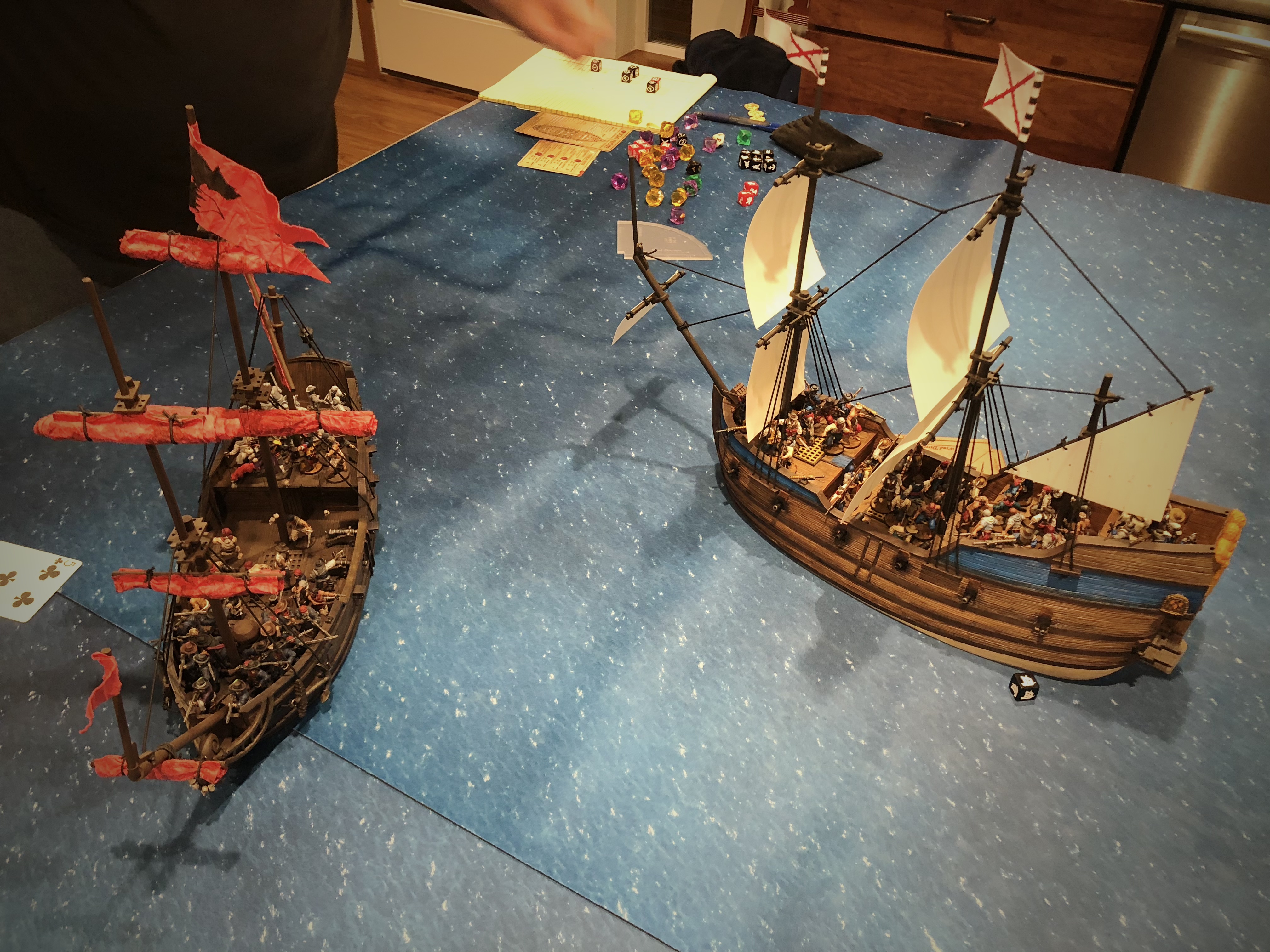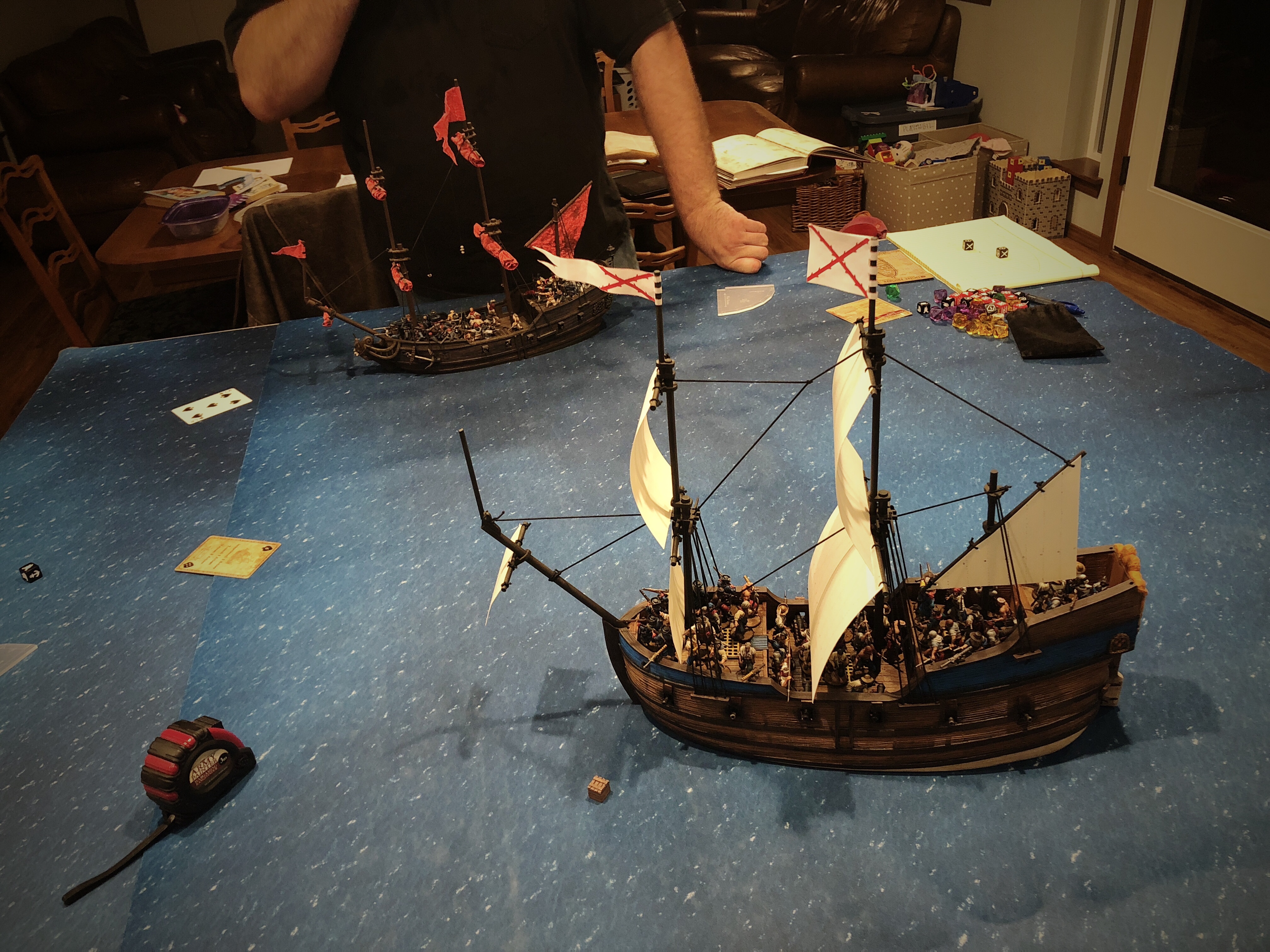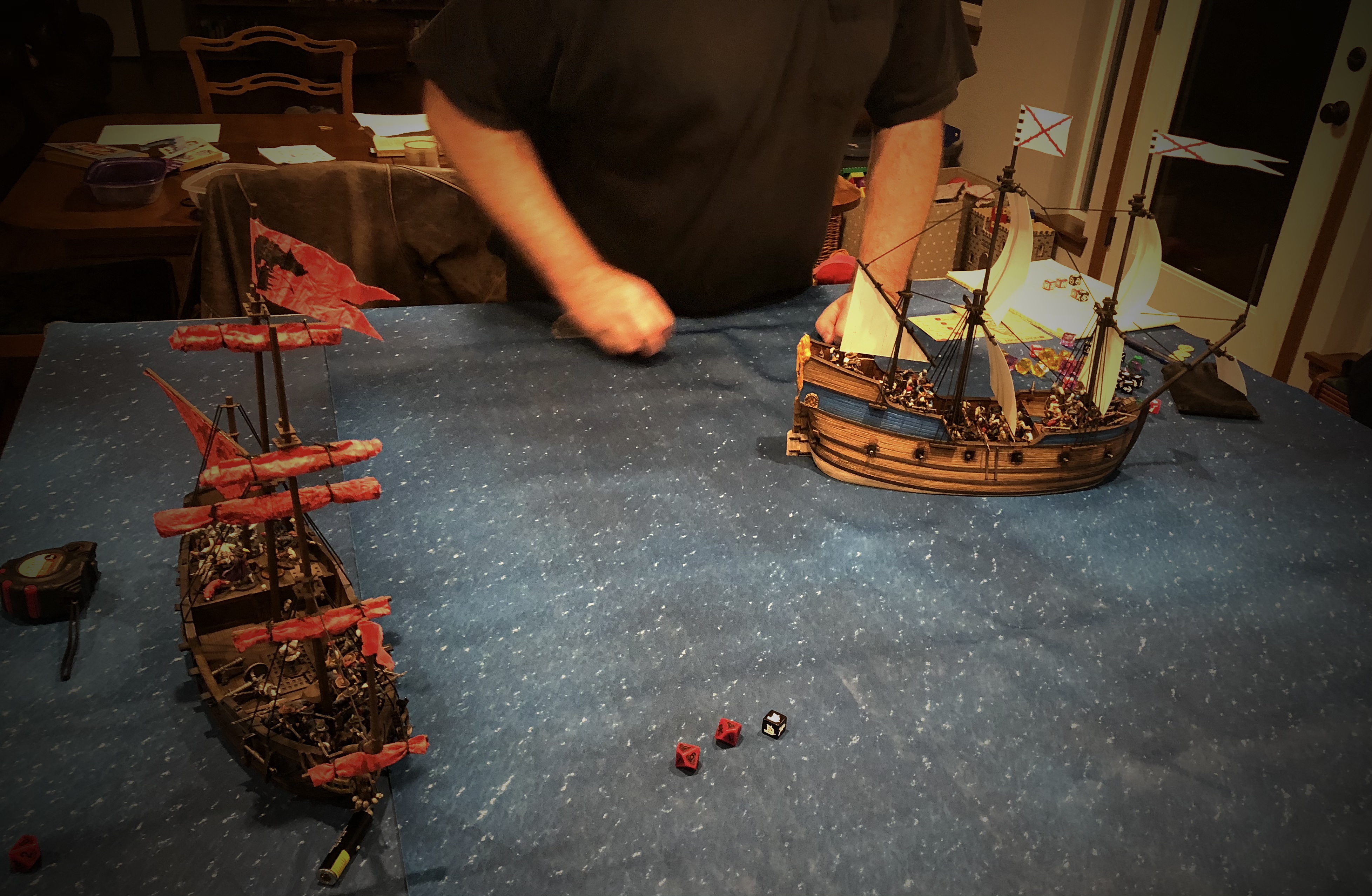 We had a fun moment when I rolled Friendly Rivalry on the Sea Events table and my Milicianos gained the Sailors rule for a turn. They changed my sail setting back up to 4″ for me!