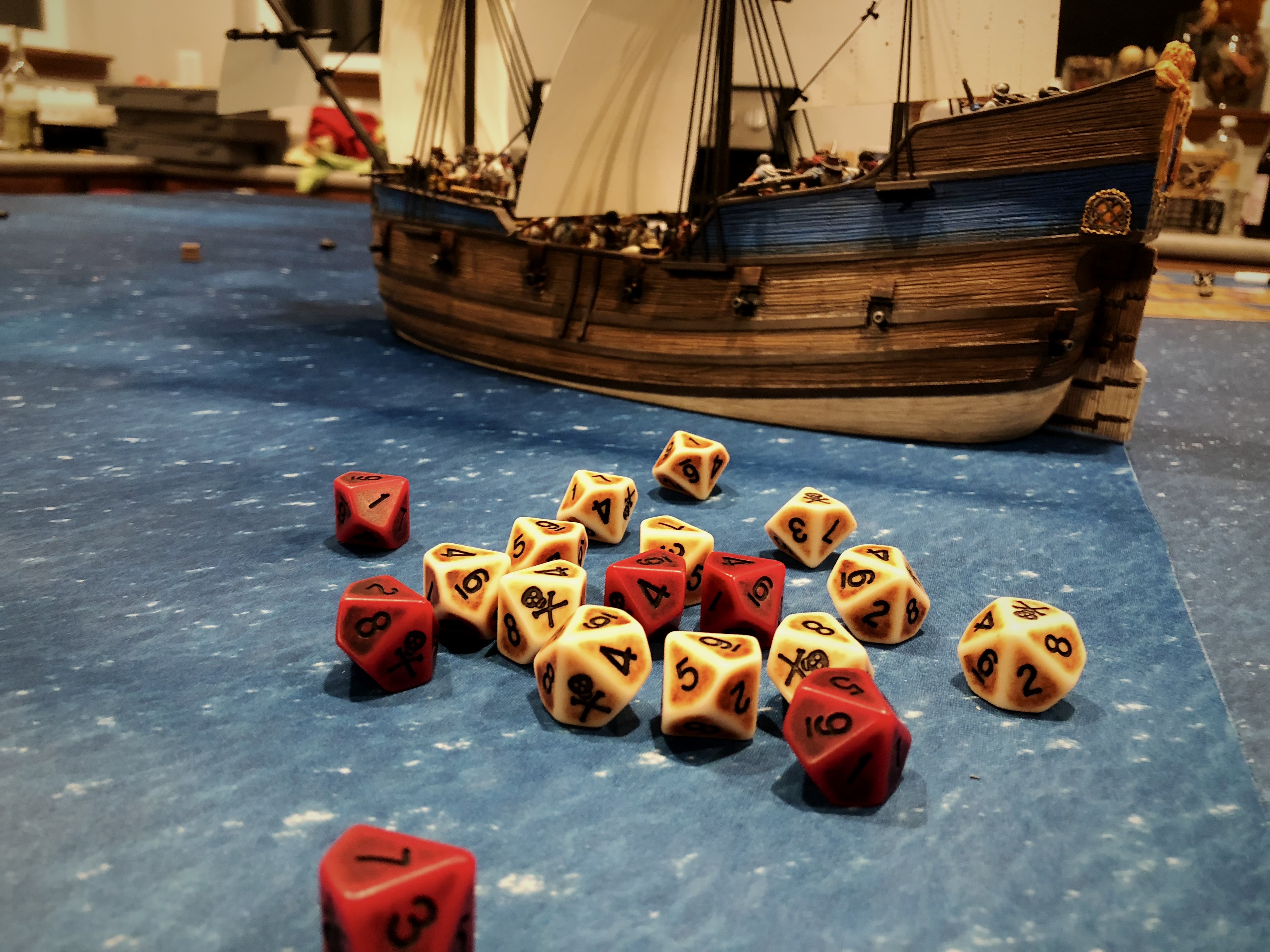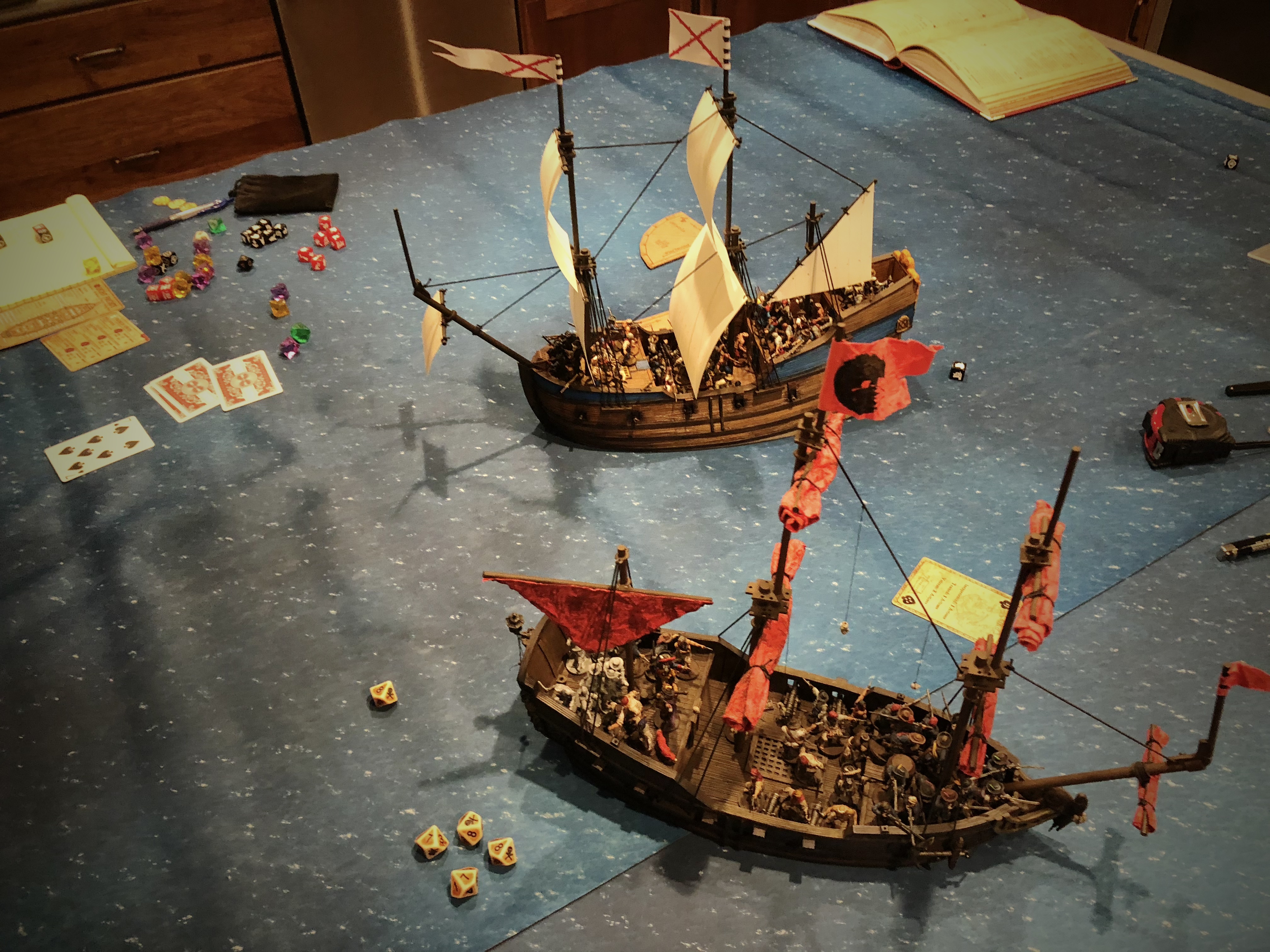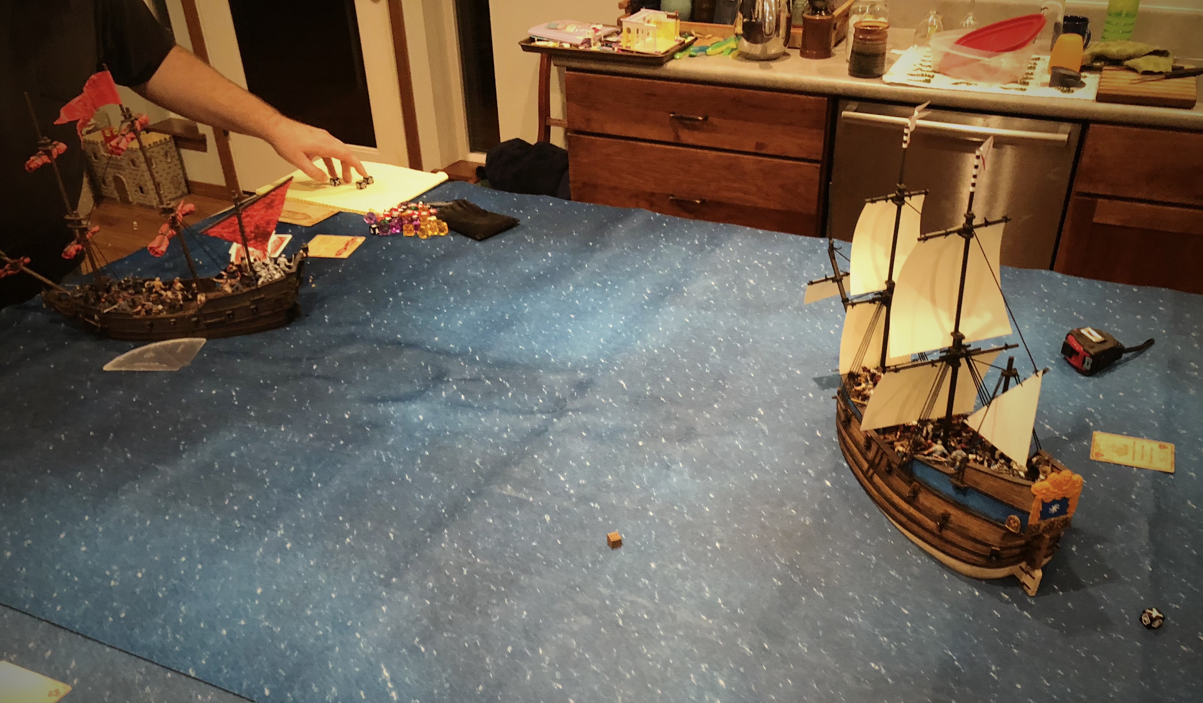 We had a fun moment when I rolled Friendly Rivalry on the Sea Events table and my Milicianos gained the Sailors rule for a turn. They changed my sail setting back up to 4″ for me!