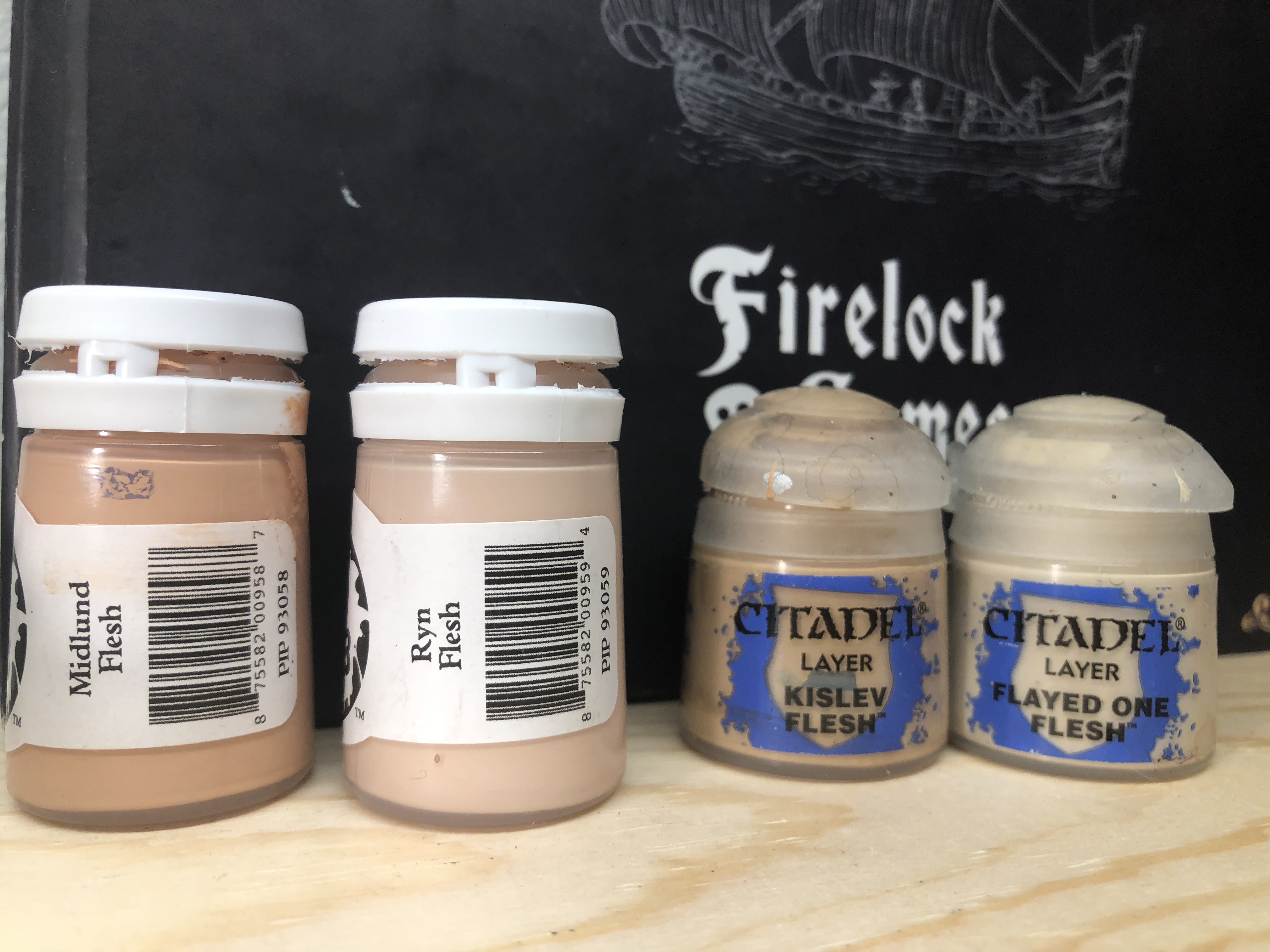 Kislev Flesh and Flayed One Flesh are roughly comparable Citadel colors.