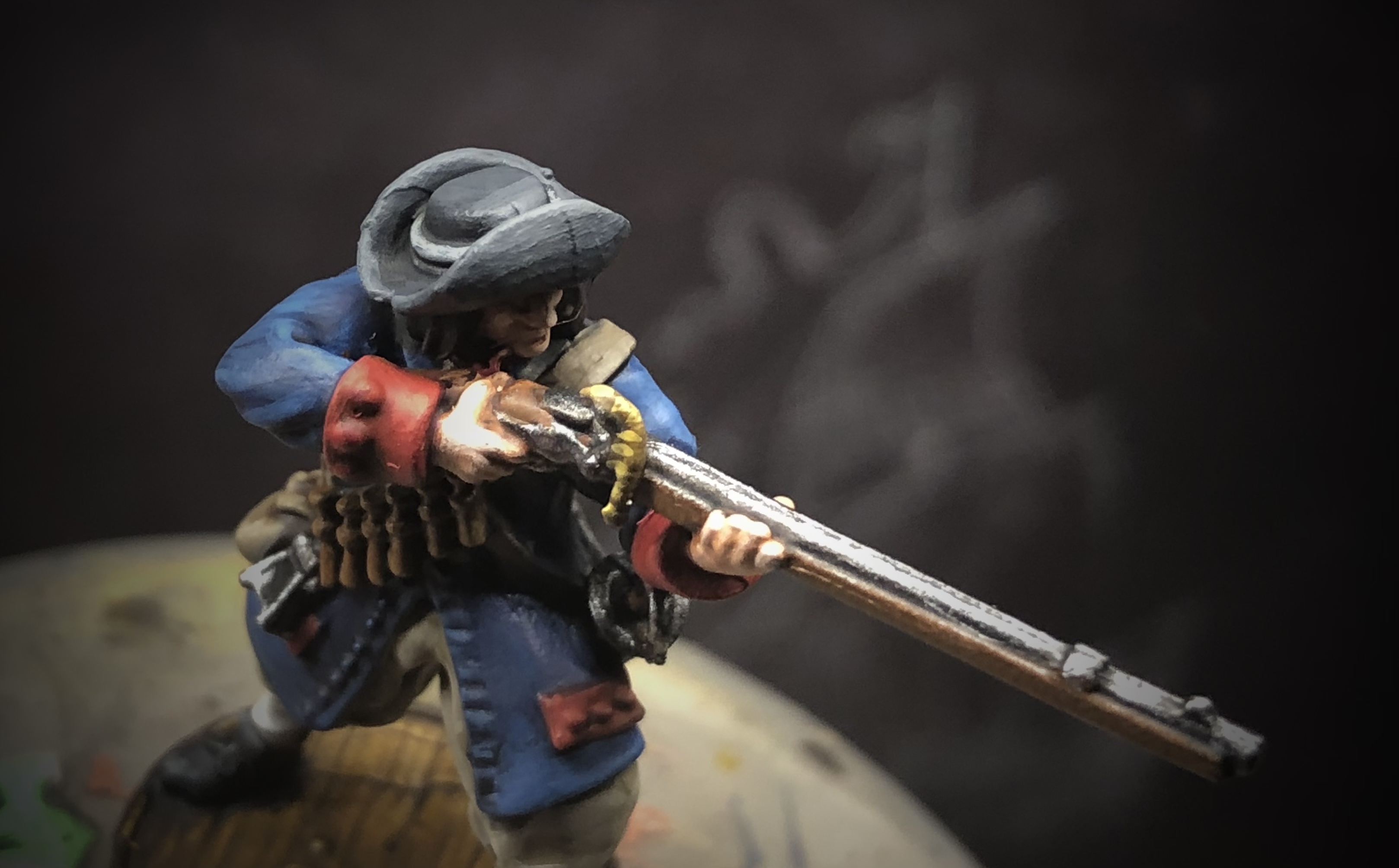 For the cartridges and musket stock I mixed up a range of Mournfang Brown, Skragg Brown and Deathclaw Brown.