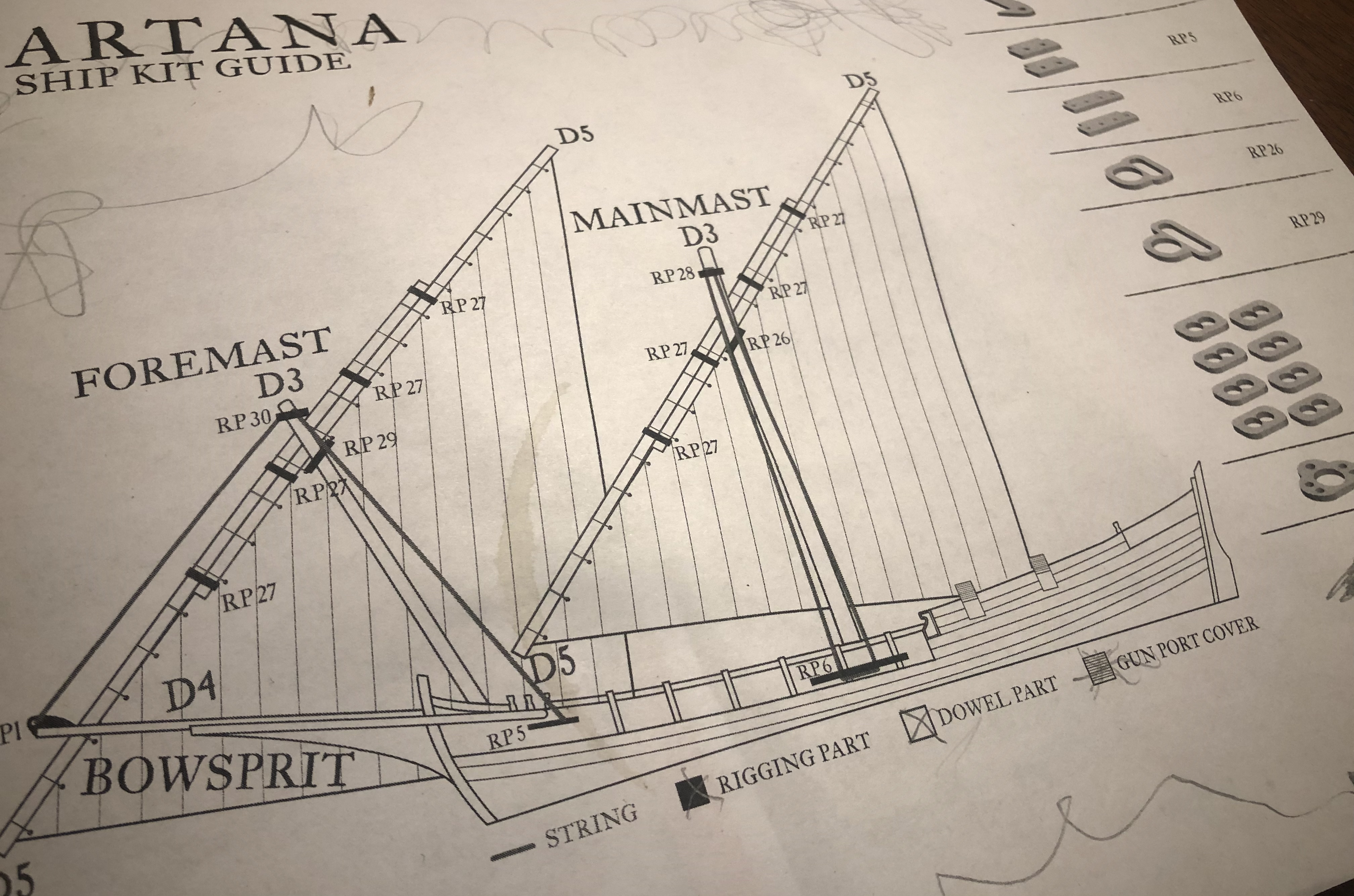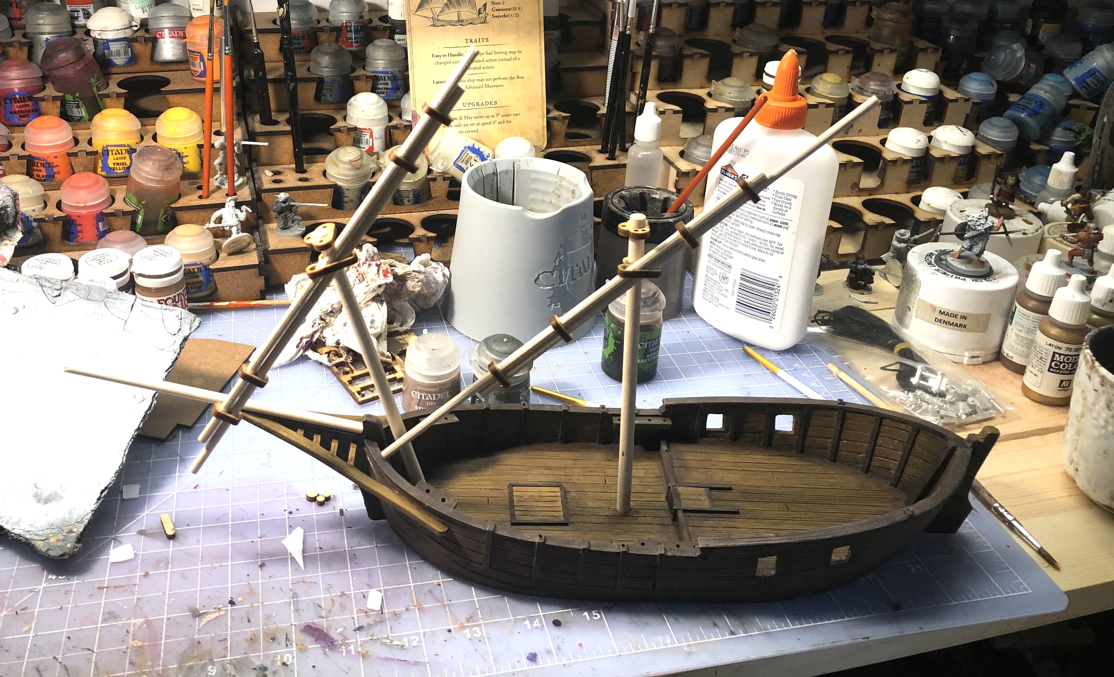 The rigging guide found in the downloads section on Firelock Games website is helpful but it doesn’t seem entirely to scale. That back sail goes way further back in this diagram than how mine turned out.