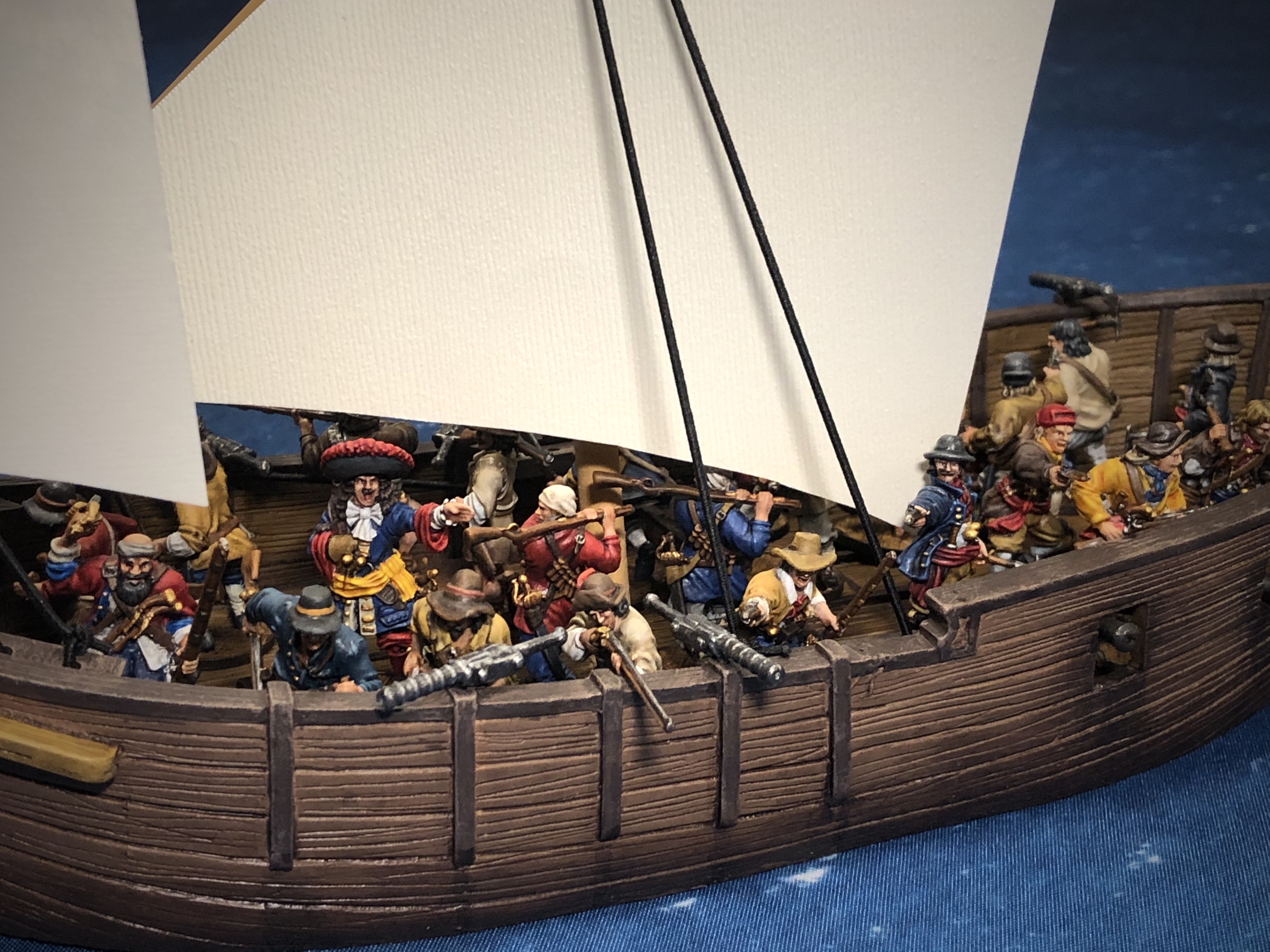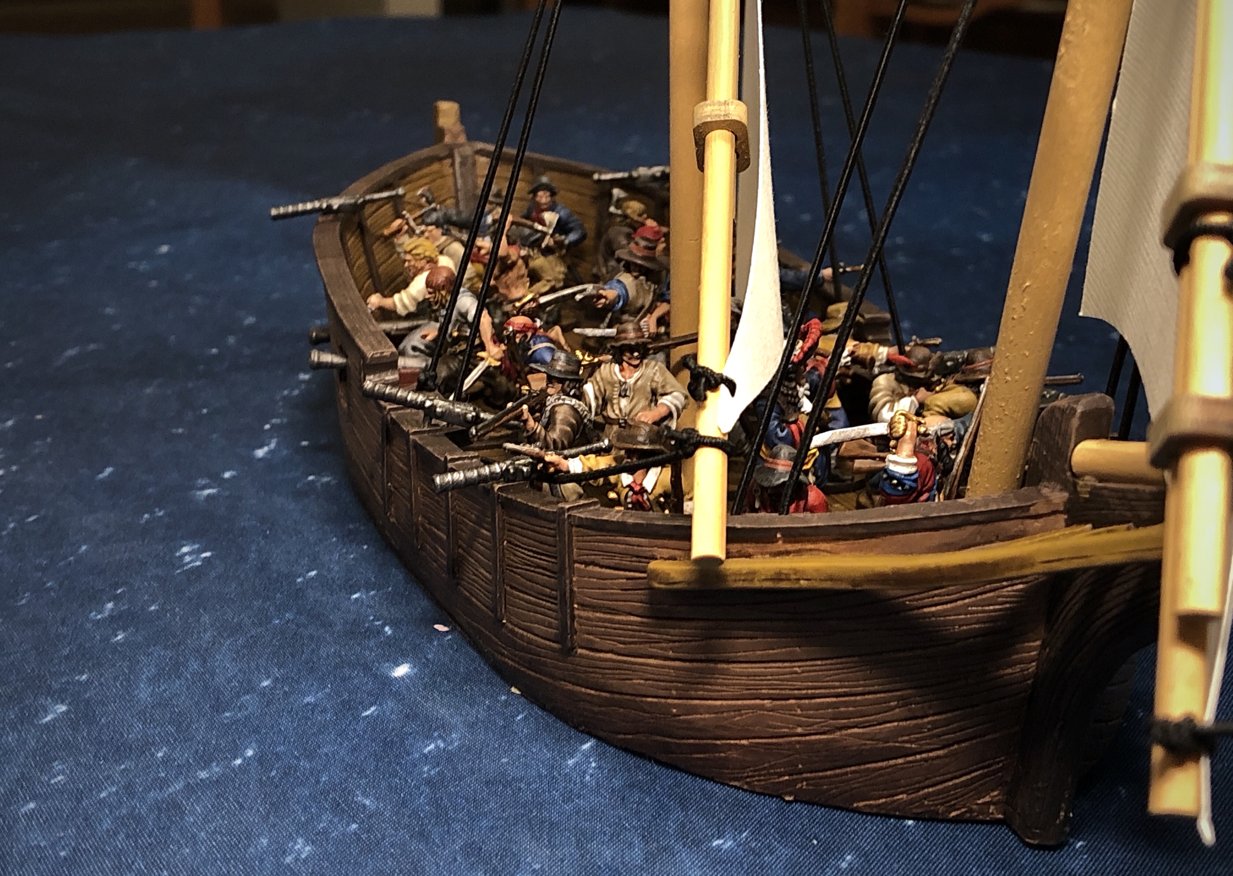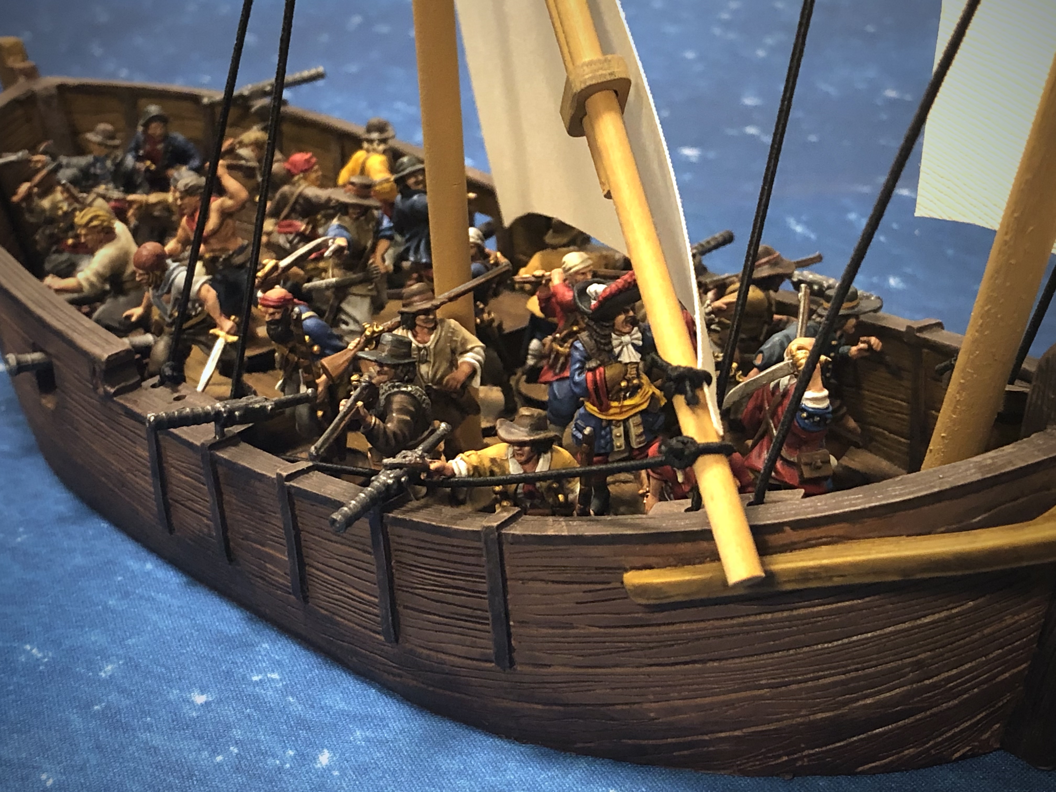 I put some Buccaneers in there and got some pics on a mat. I got something messy on the front sail so I had to patch it up with some paint.