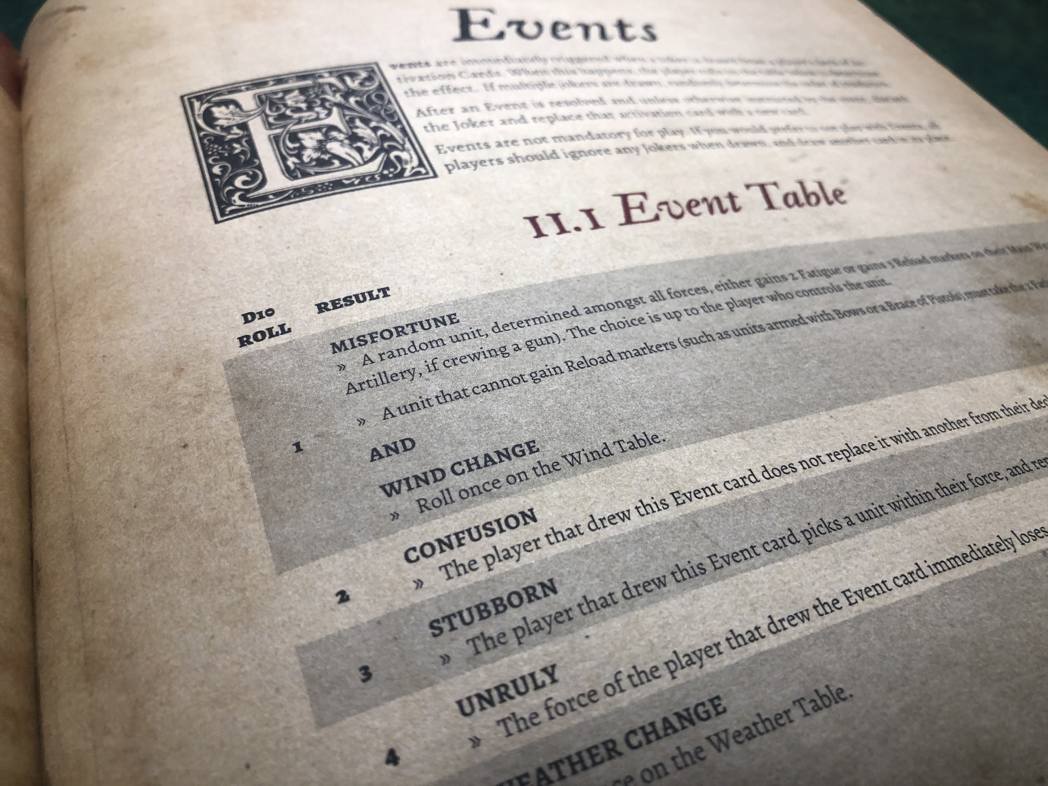I drew an event in my opening hand which turned into Misfortune on Nick’s command unit of Milicianos. With the Musician and Standard Bearer attached to the unit, he decided to take the 2 Fatigue over the 3 Reloads.