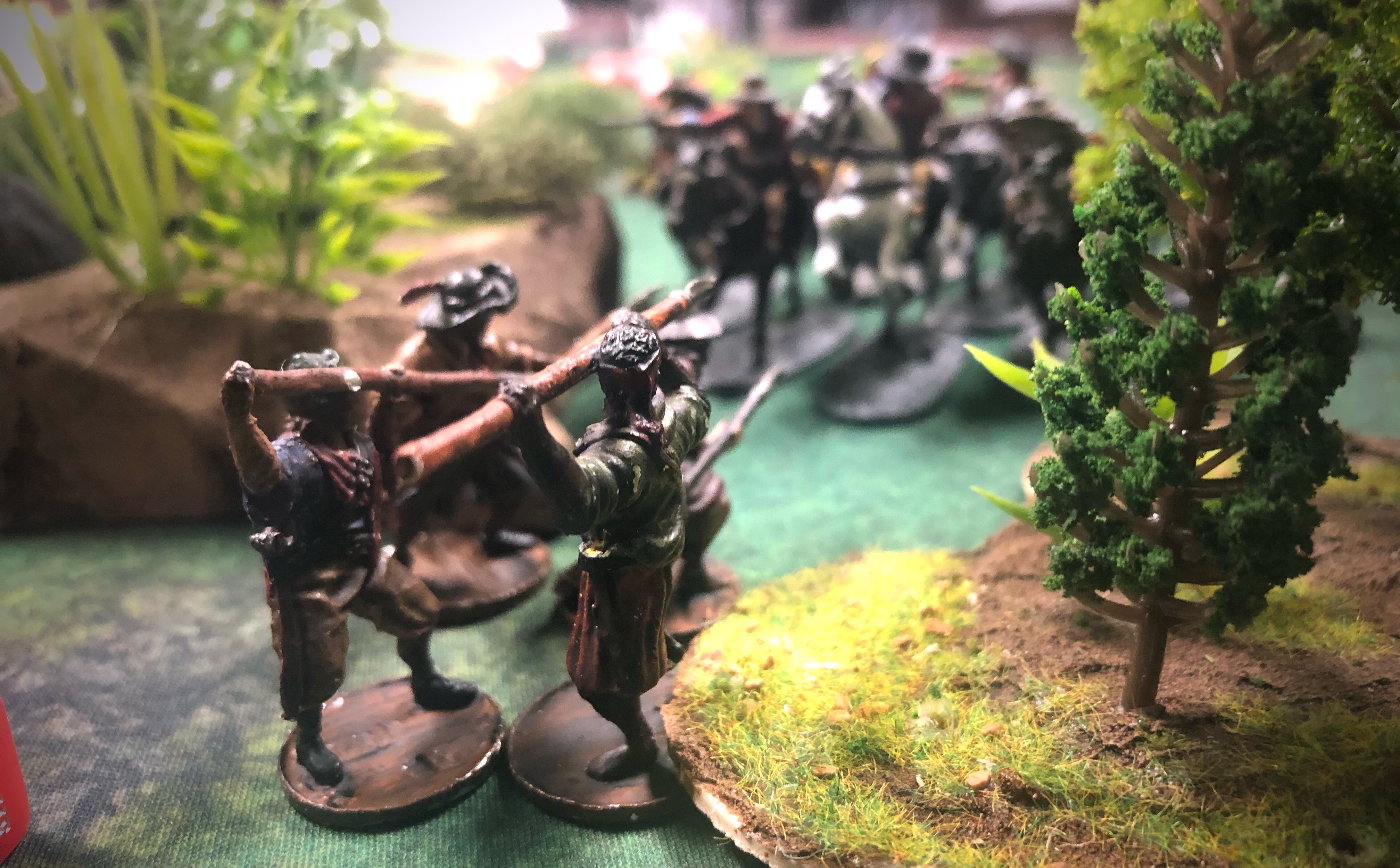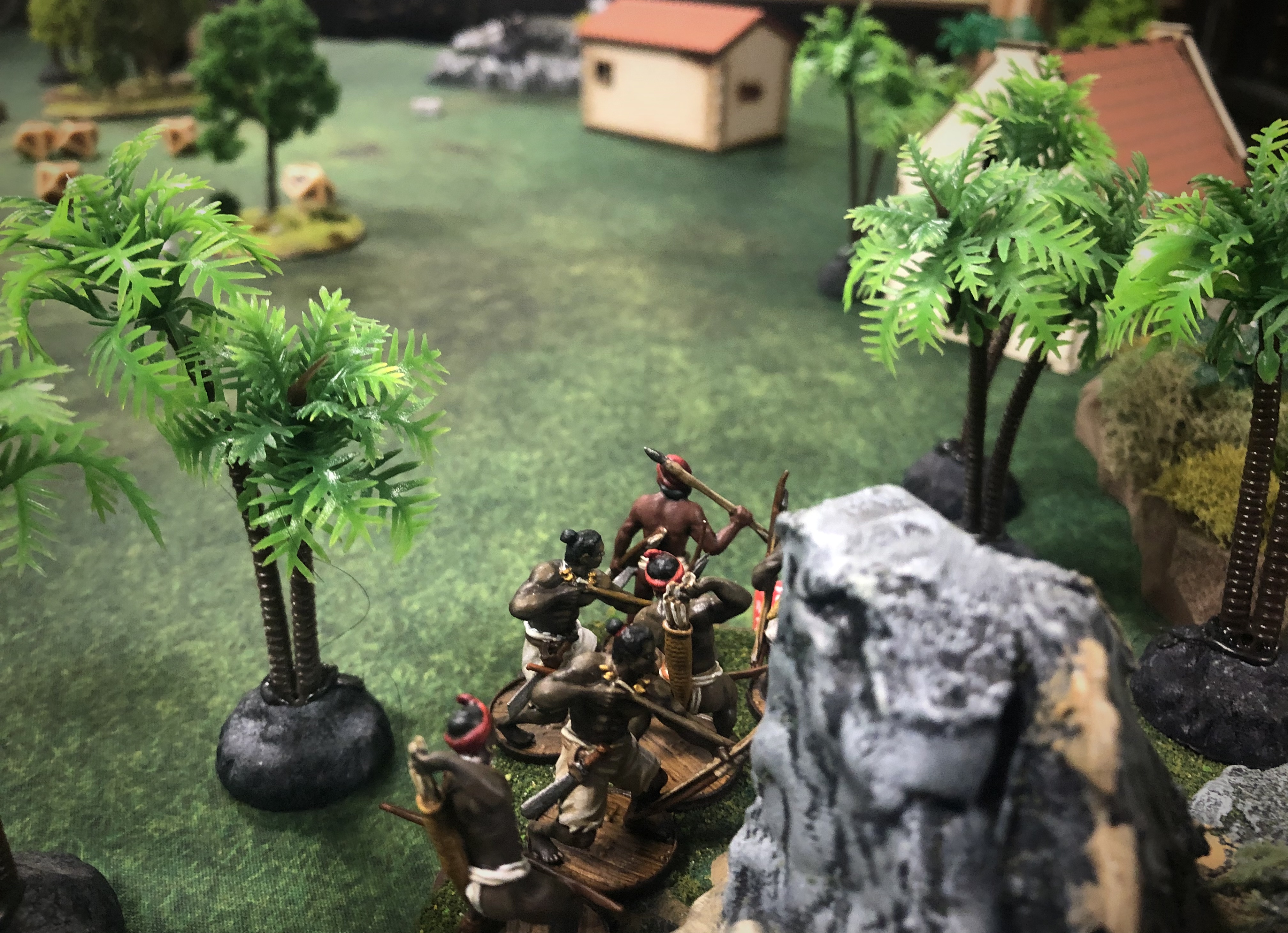 The Africans gave me good service using my Spades. They could move up within 7″ of the Soldados, fire twice with their bows (bows don’t care about rain!) and move back to their cover at 11″ away with Skirmishers.