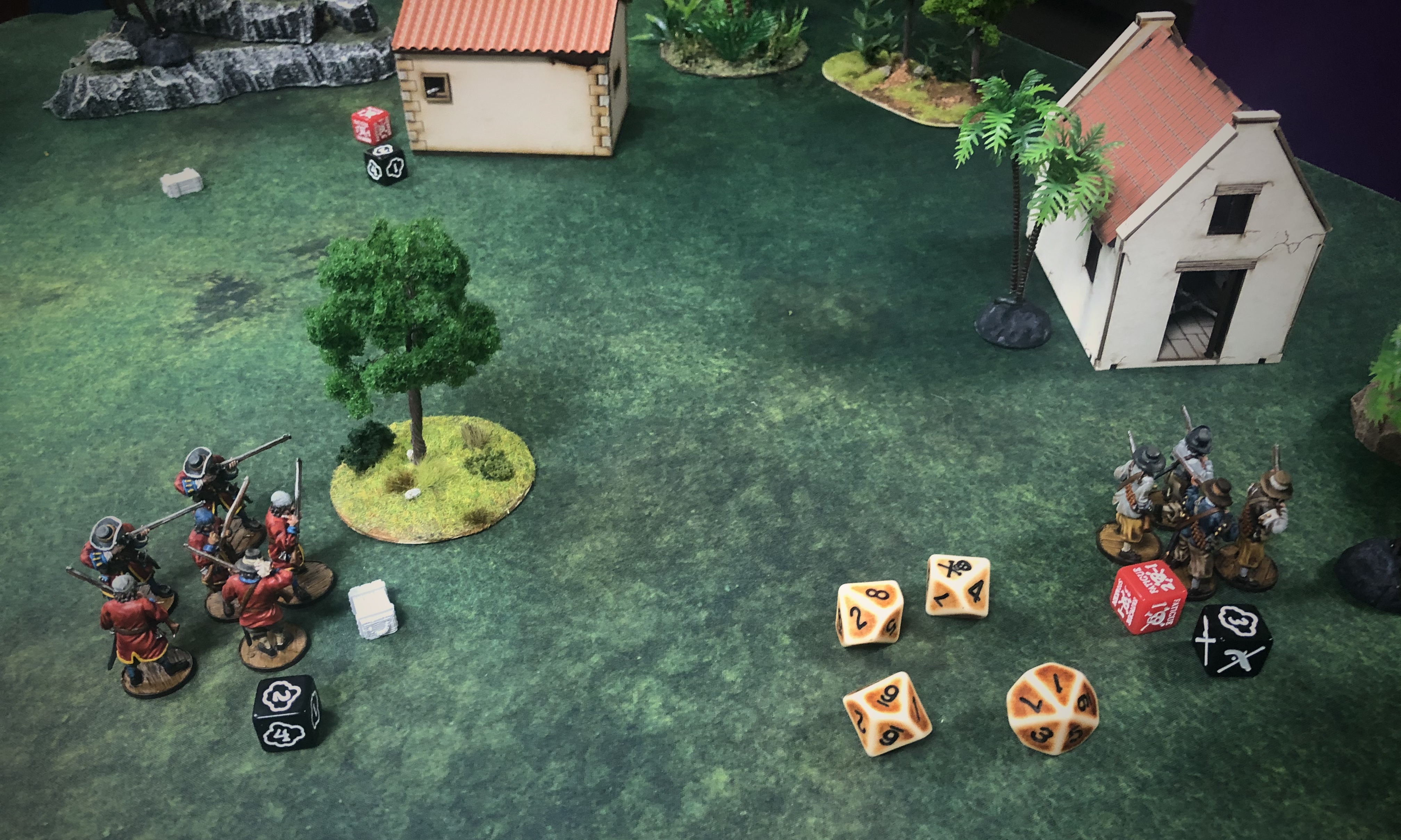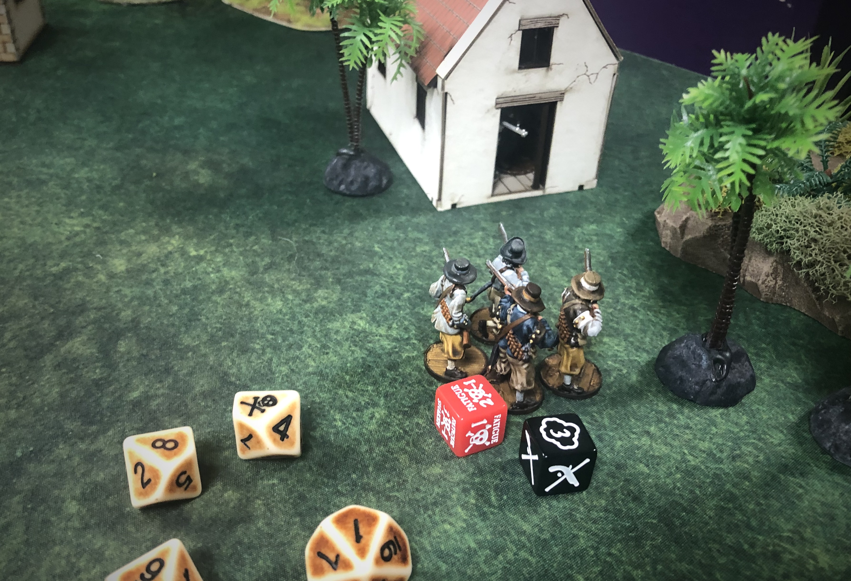 The Militia and Milicianos shot back and forth across the field a few times and I scored a couple lucky 10’s. Even inside a building both these Militia units only Save on 7’s!