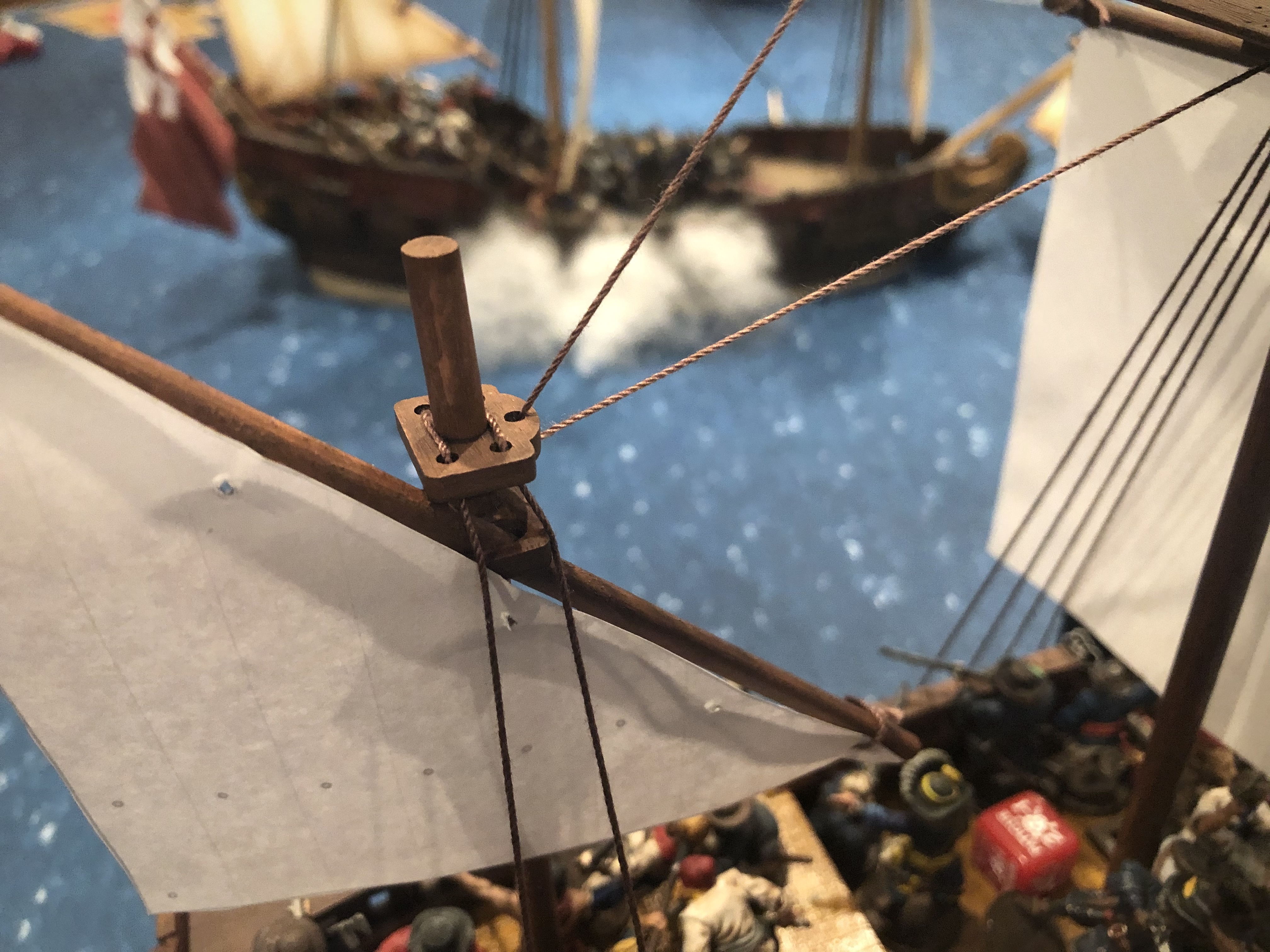 My poor Fluyt had to turn and run straight downwind to get back into the action after losing so much speed going upwind for that first broadside on the first turn.