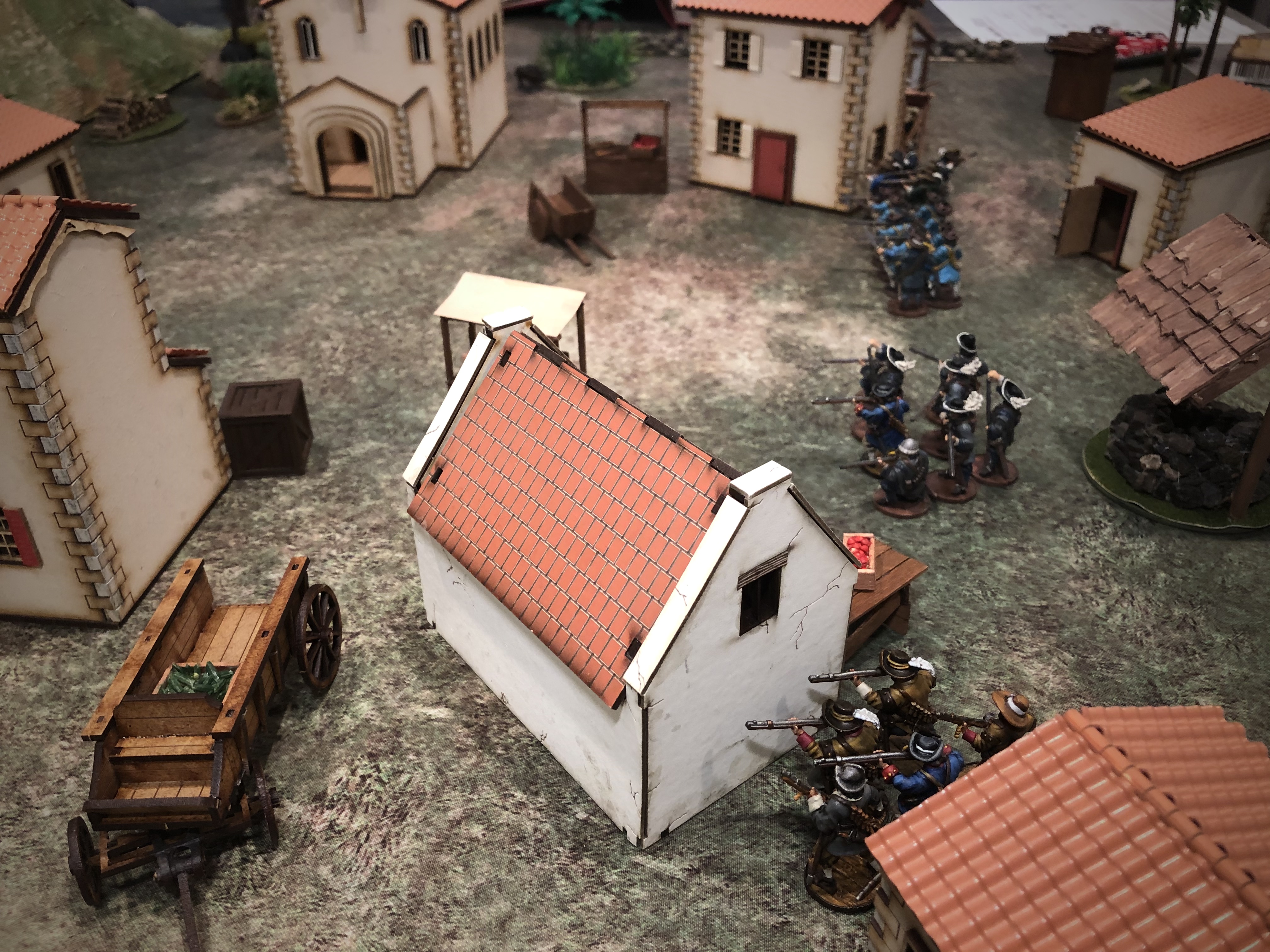 - Bryan’s Spanish Tercios had 3 Strike Points from 30 casualties and 1 Strike Point for the burning building.