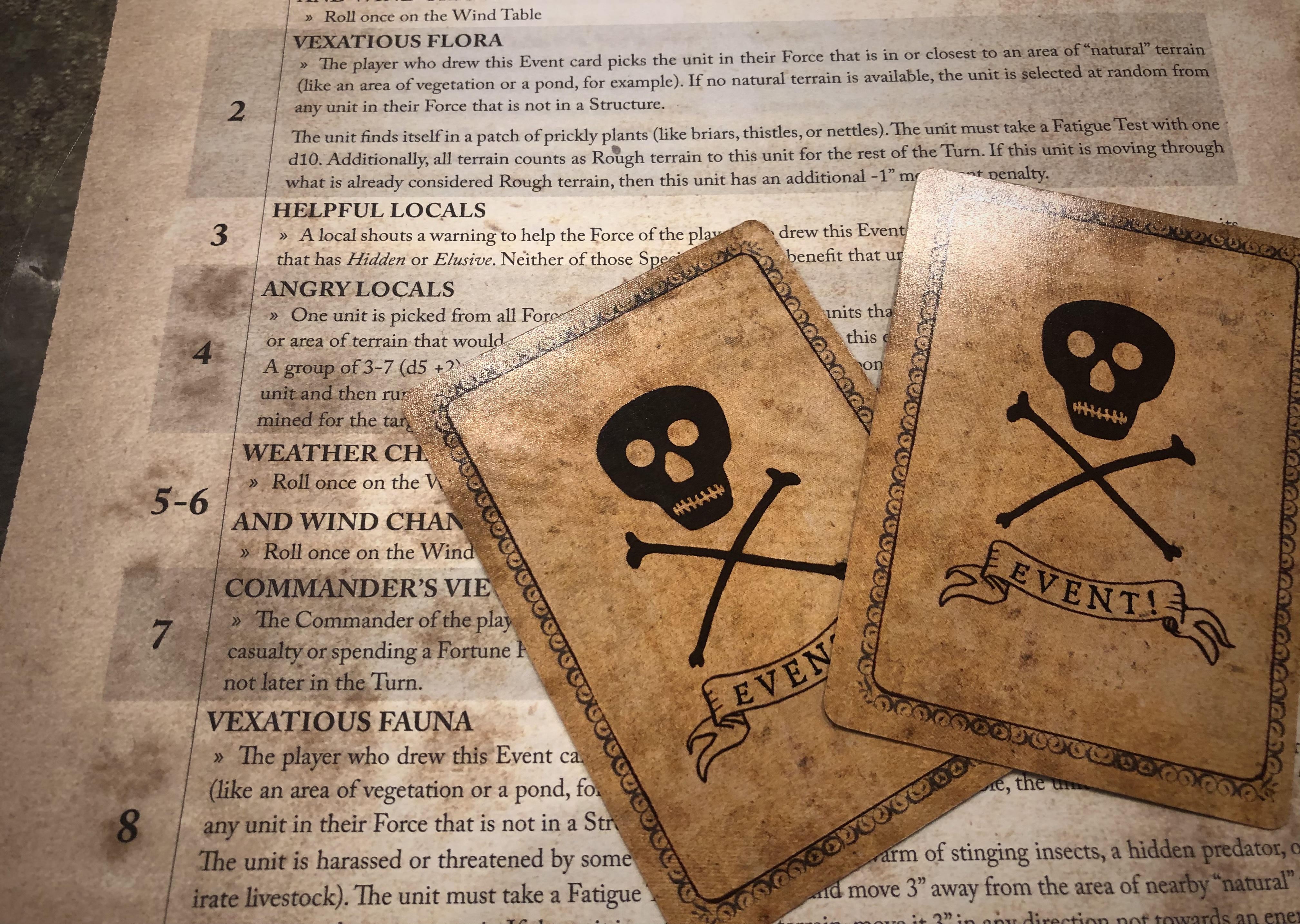 It seems I like I roll these two events a lot… 2 of the 3 units I had on the board took a Fatigue and one unit had to hurriedly crawl away from the vexatious wild boars!