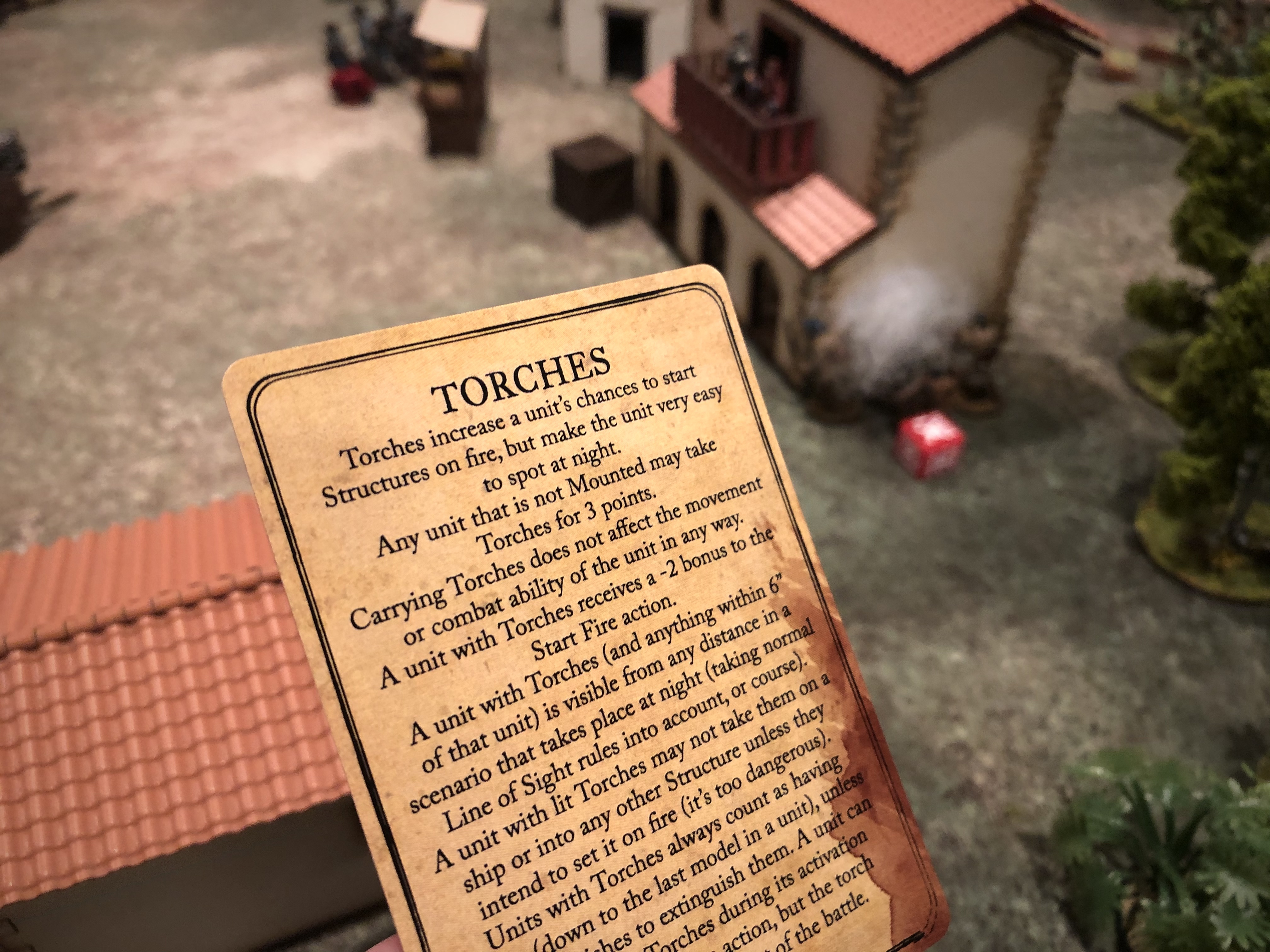 I chose the Night Attack Tactic as part of the Campaign game setup so visibility was limited to 12″ although the Matchlock guns on the Spanish soldiers let me see them at 24″.