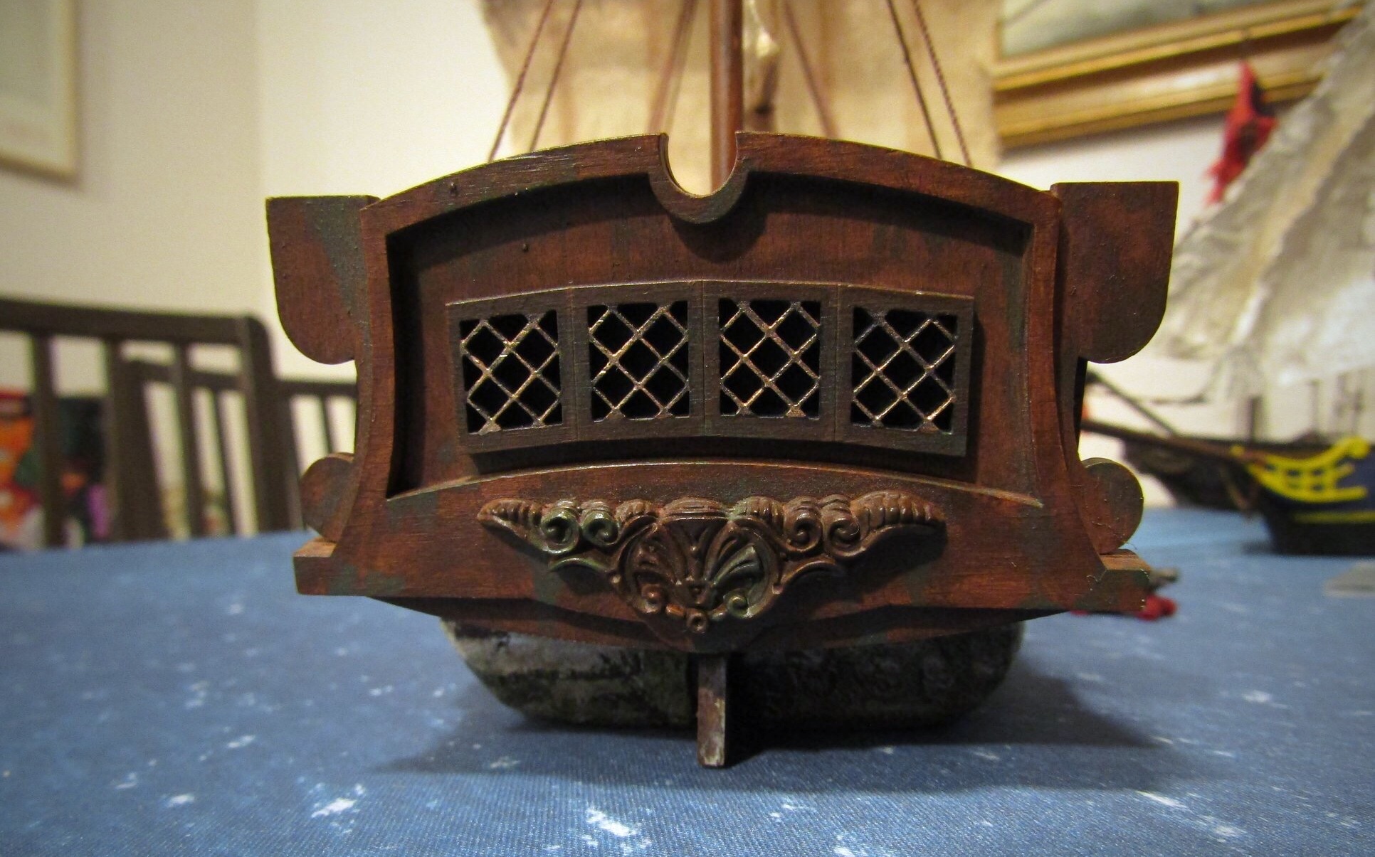 Here are a few things though that I wish I knew before: The aft gun deck takes cannon models, not stubs. If you want to permanently add cannons, leave it open, paint the inside, glue your cannons down then seal it up. Light cannons also do not fit below deck because of the barrel pitch, and did not fit in ⅔ of my gun port, though this might be because of an error I made in building. Being a wood model, it also drinks in paint. This includes washes, though it’s a neat trick to get the most out of the natural wood grain.