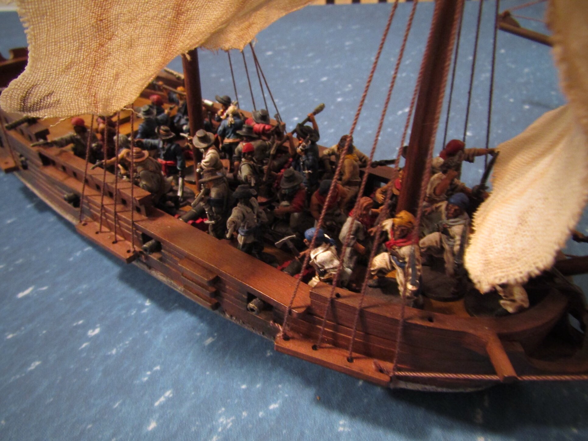 Here is a 200 point Spanish Corsair list that is a fairly typical gunship, except the Marineros Piqueros are intended to crew the sweeps. It doesn’t have a mizzenmast to allow you to raise the sails quickly if you need to.