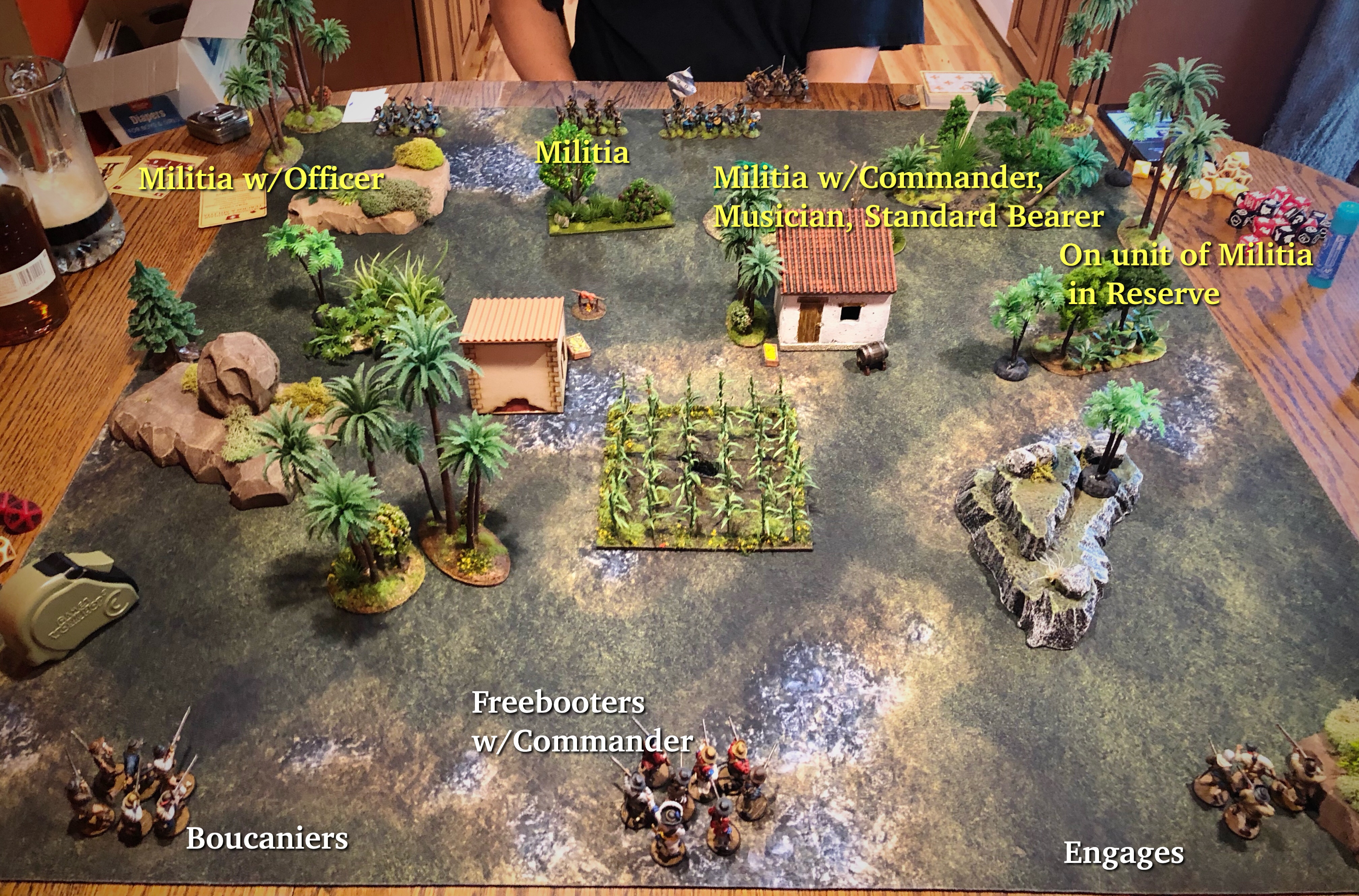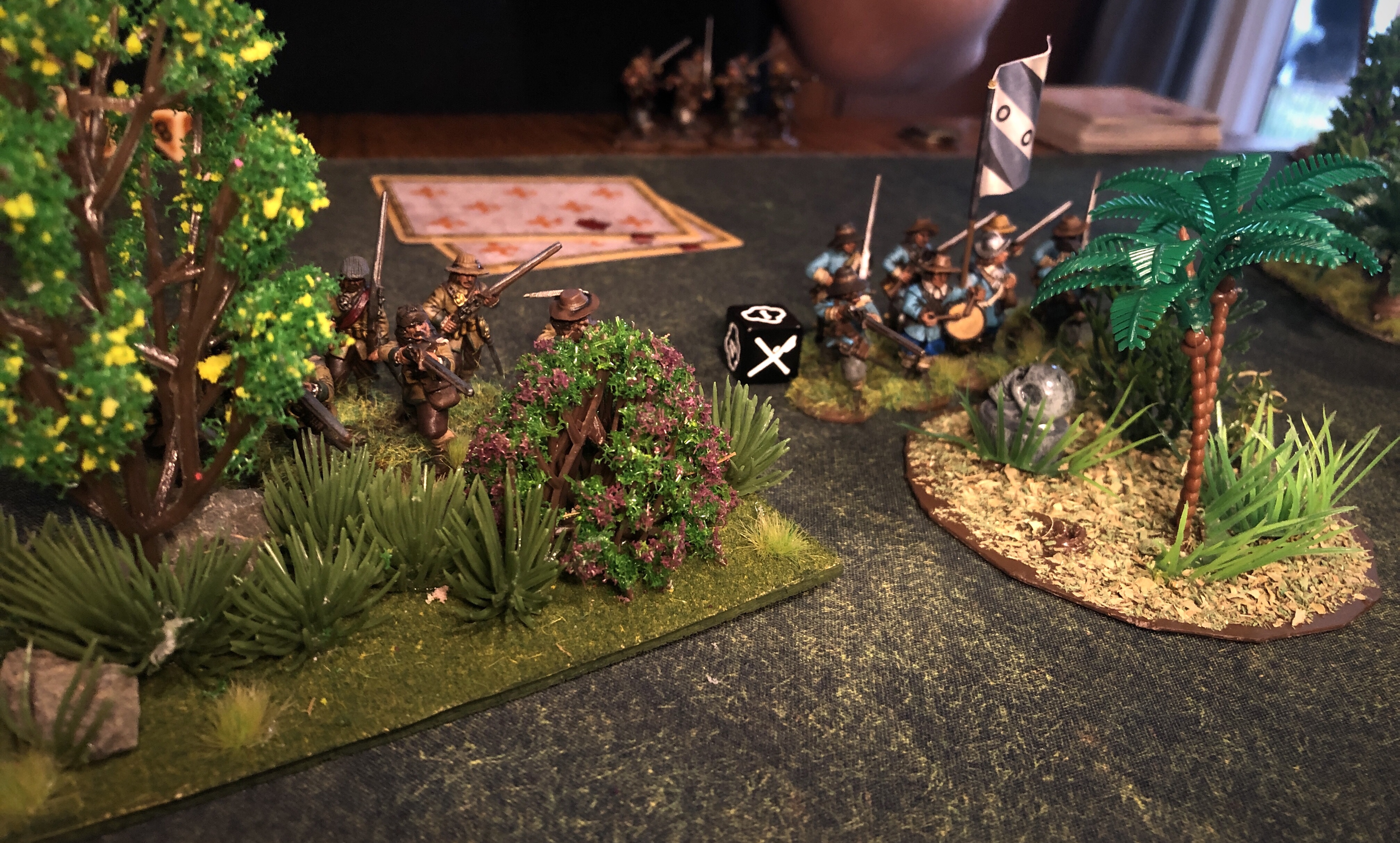 Before the game began I had to roll a Fatigue check for each unit for Bryan’s Musician’s Terror rule. Both the Engages and Boucaniers took a Fatigue.