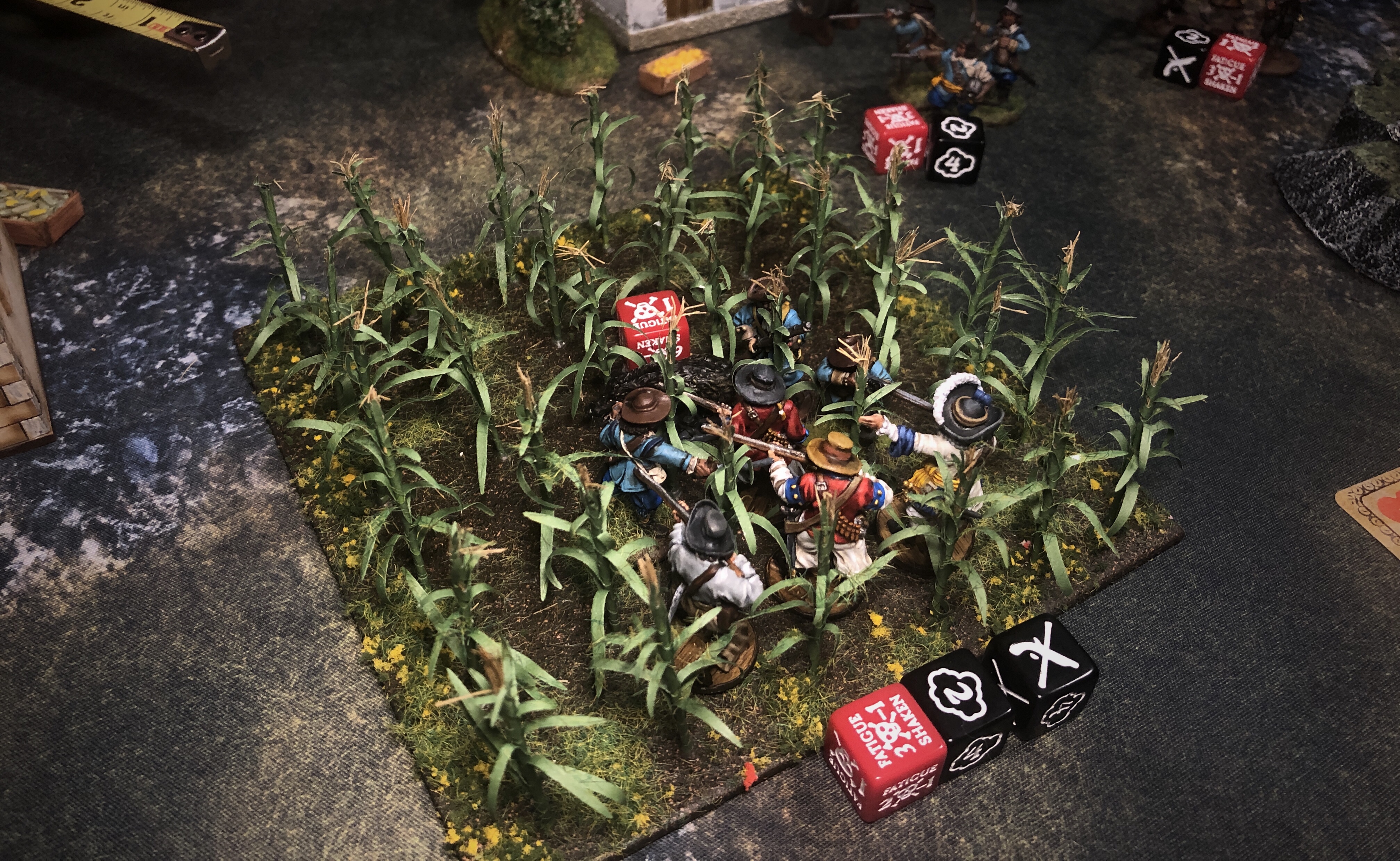 I moved my command unit up to the edge of the cornfield and used my command point to reload the nearby Boucaniers.
