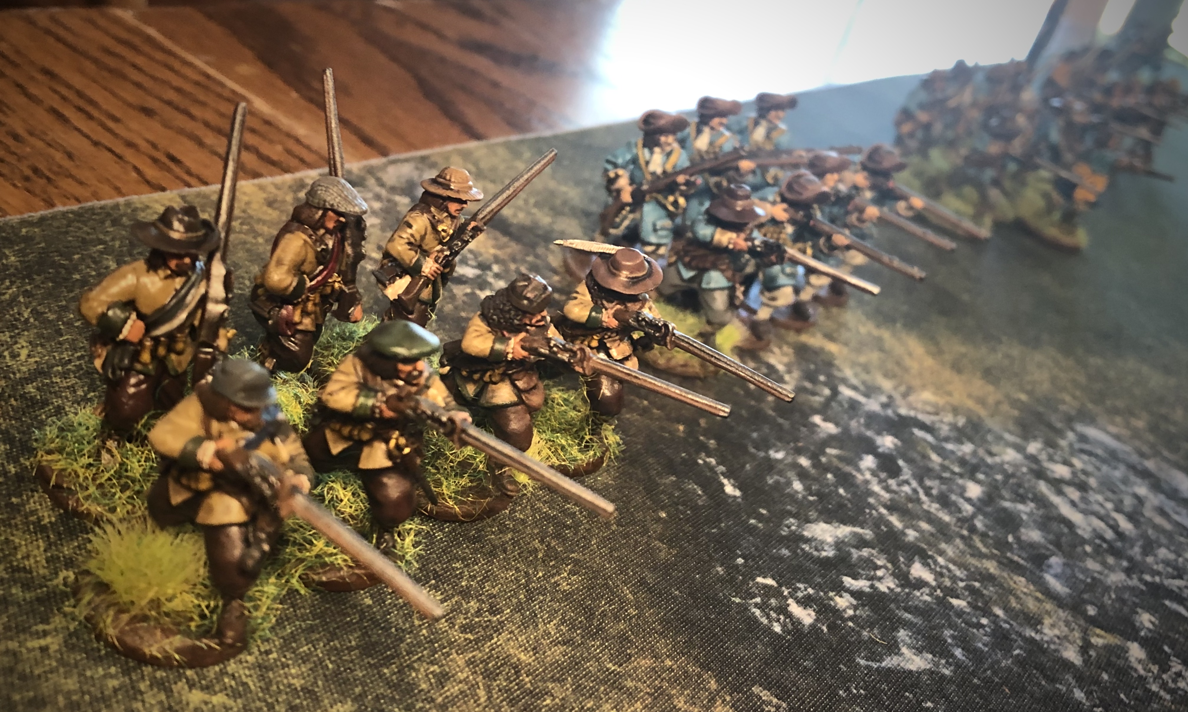 When Bryan and I were first learning the game together the Inexperienced Spanish Militia lists tended to steamroll the French and English lists with fewer models so we thought this would be a good