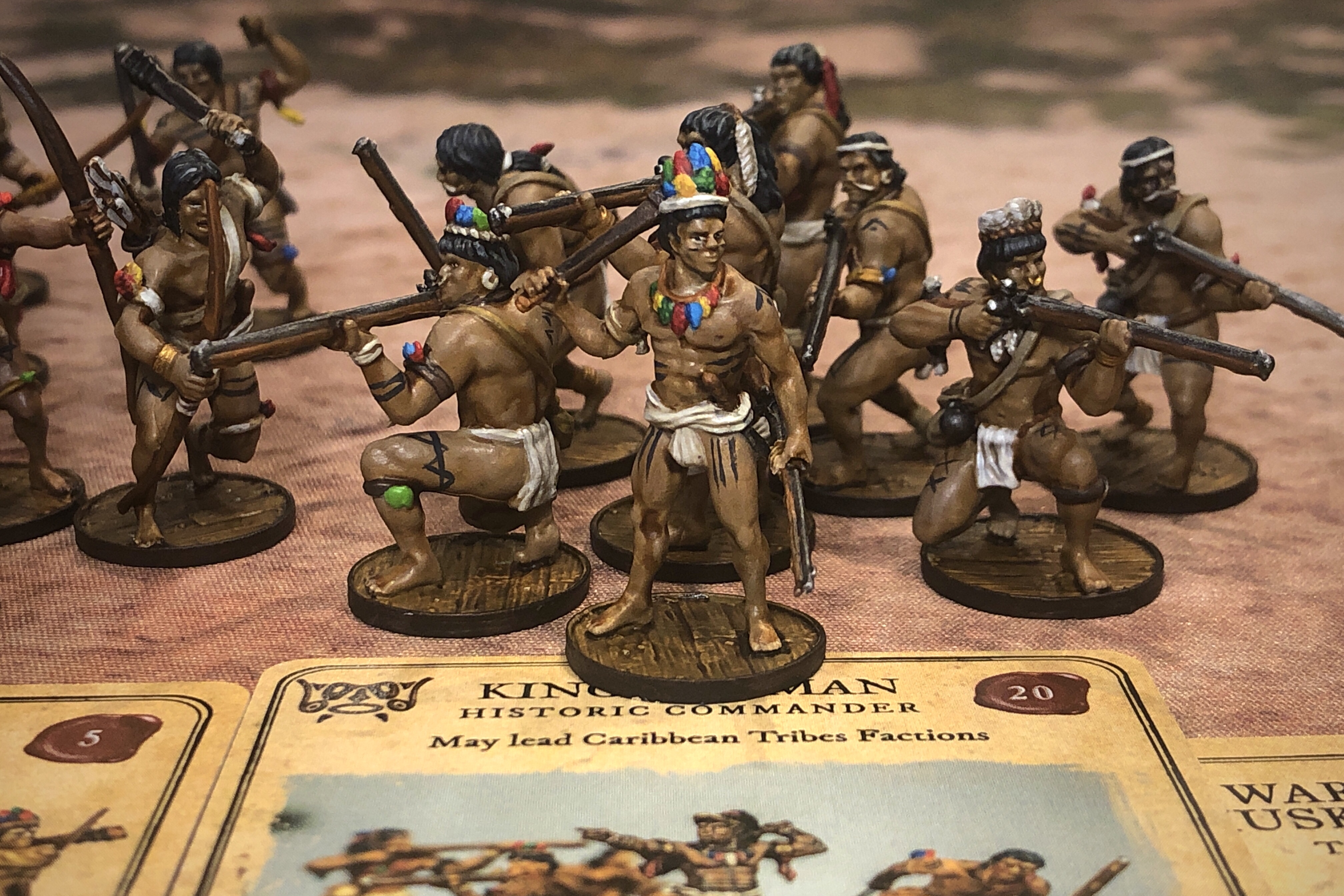 - A unit of 8 Veteran Warriors with Thrown Weapons, Sidearm Muskets with an Officer attached.