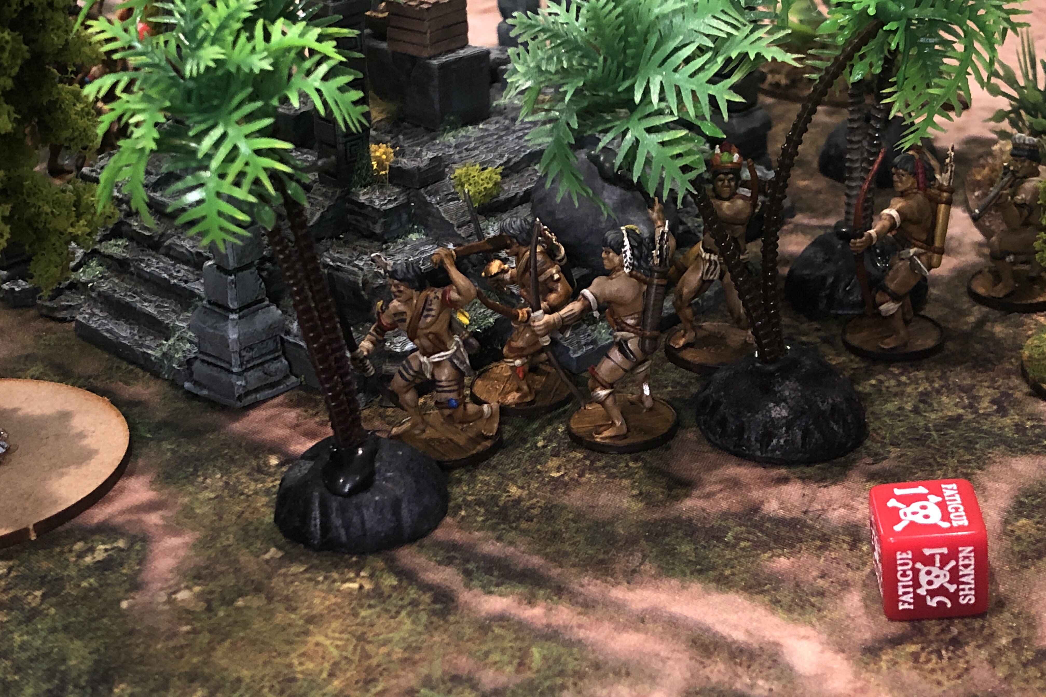 But when I did get hit it hurt! These Warrior Archers above failed 1 Save and had to roll 3 Resolve dice! I was lucky this time, but 3 Fatigue dice really hurts when your Resolve is 6 for most of your faction.