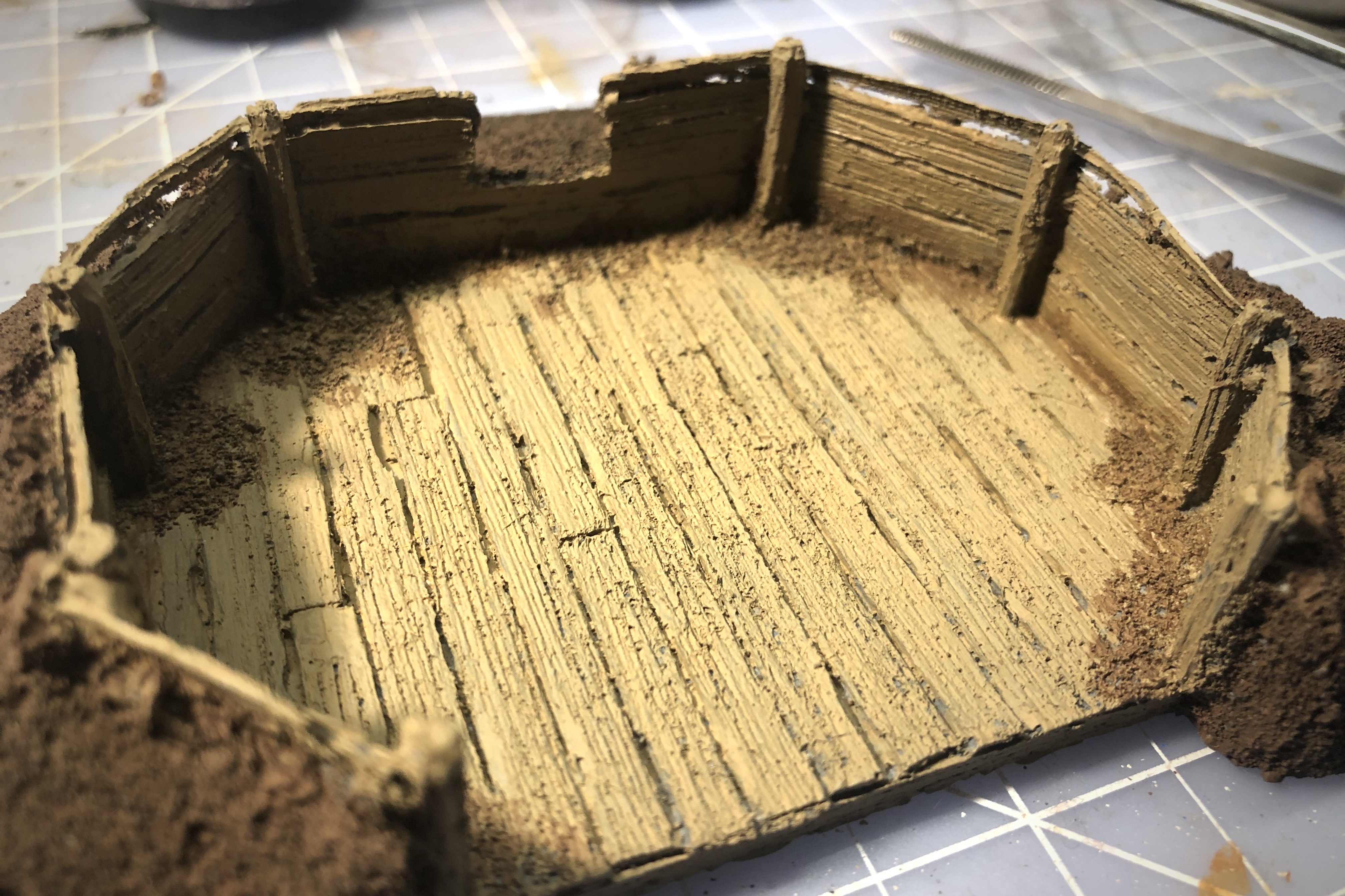 Before moving on to weathering I used my dirt colors to paint the areas in the fortification that have the same dirt texture.