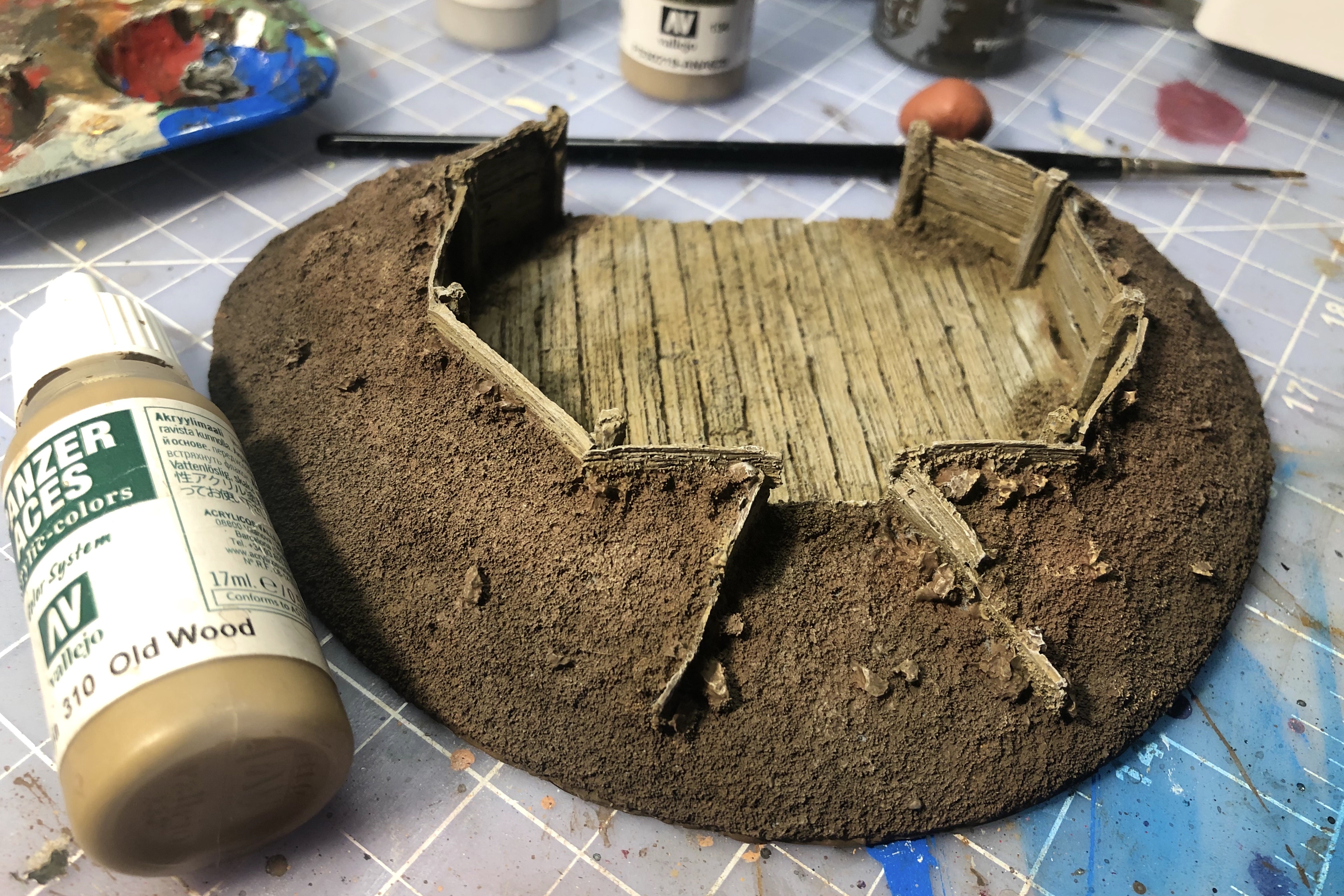 First I painted all the wood planks with Vallejo Old Wood from the Panzer Aces line.