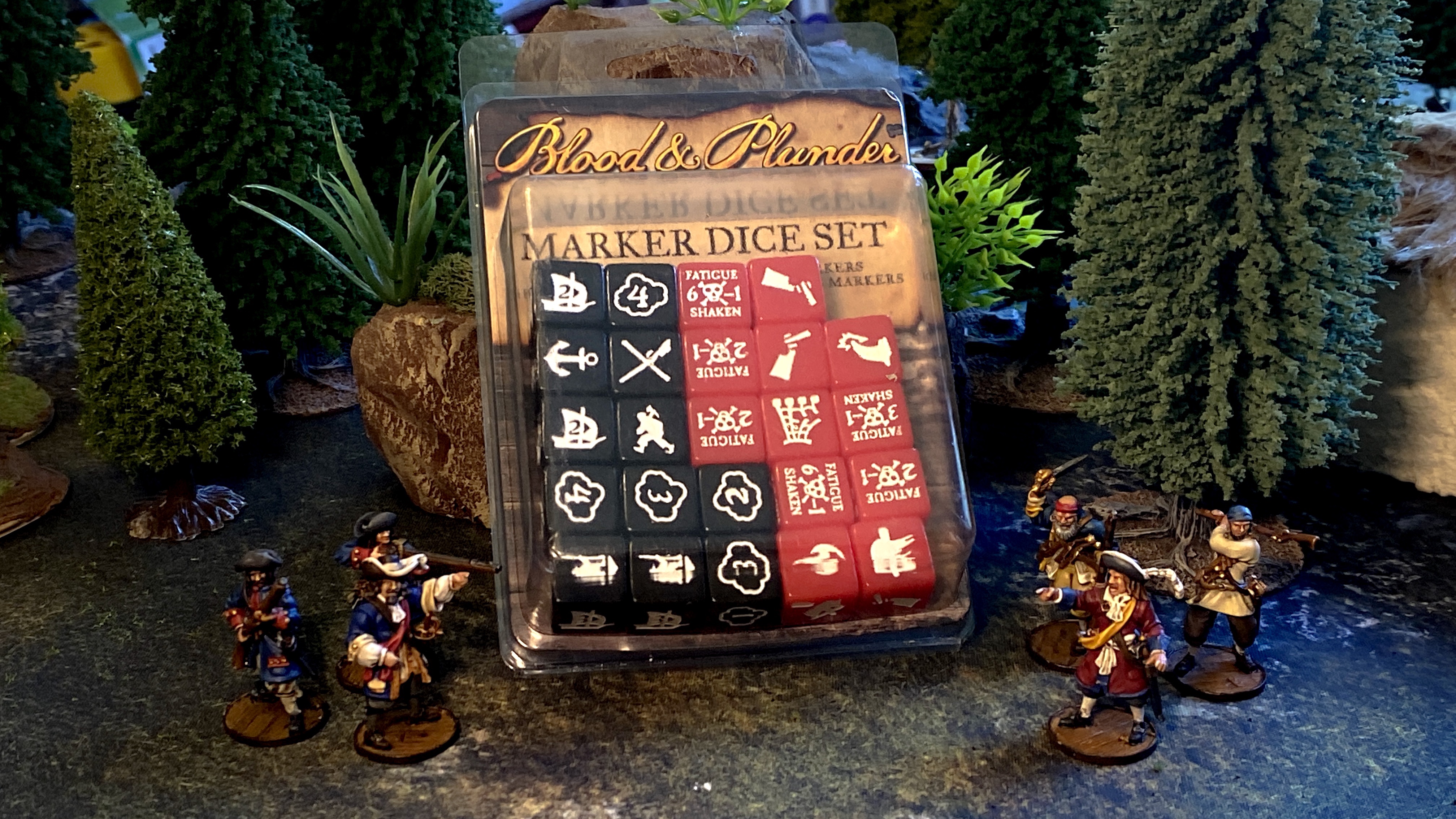 We recently launched our Facebook page and we would love it if you followed the page! As part of our launch we’re giving away a full set of the Blood & Plunder marker dice! These are currently in between print runs and not available from Firelock since they sold out a while back. They’re out of print and hard to get!
