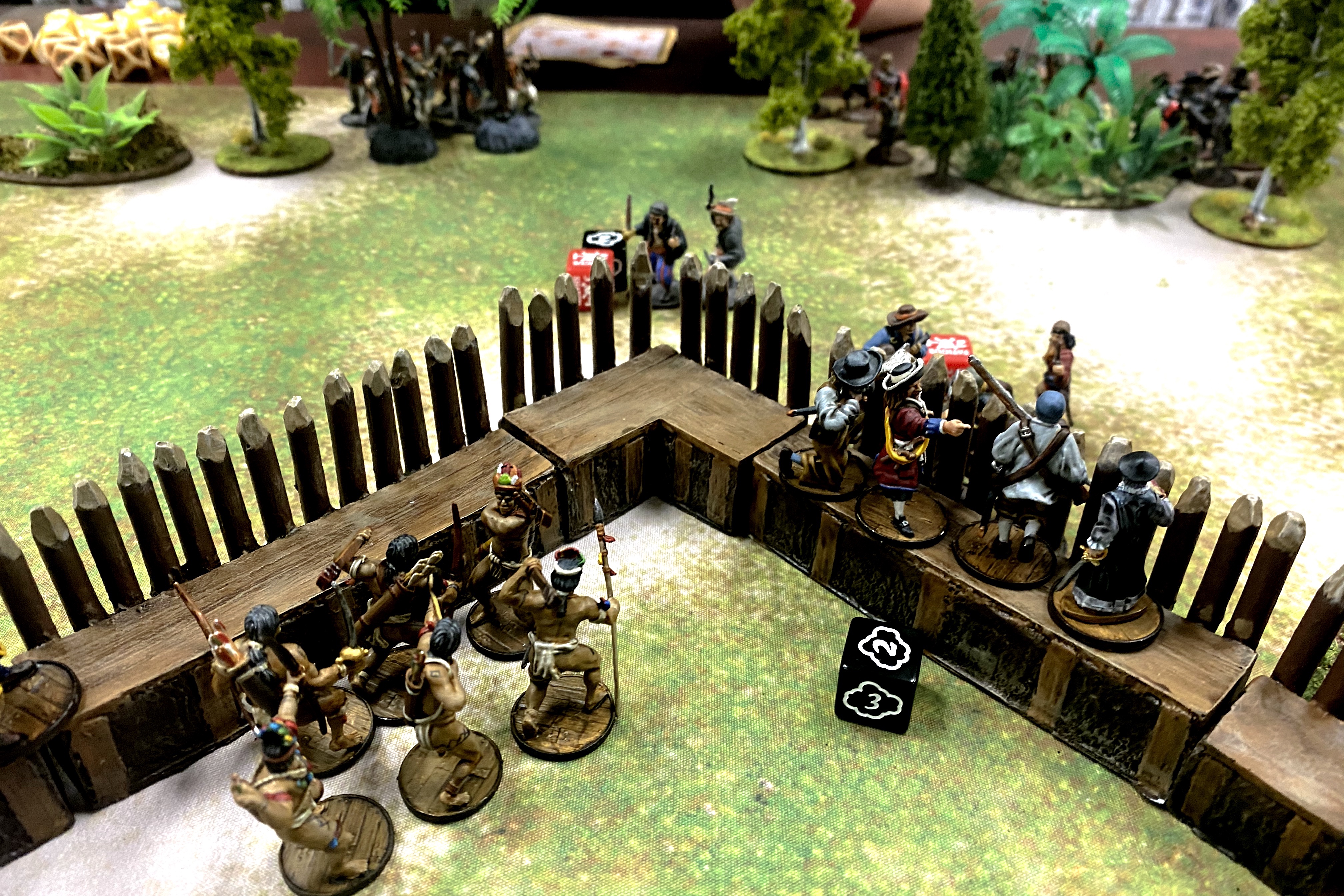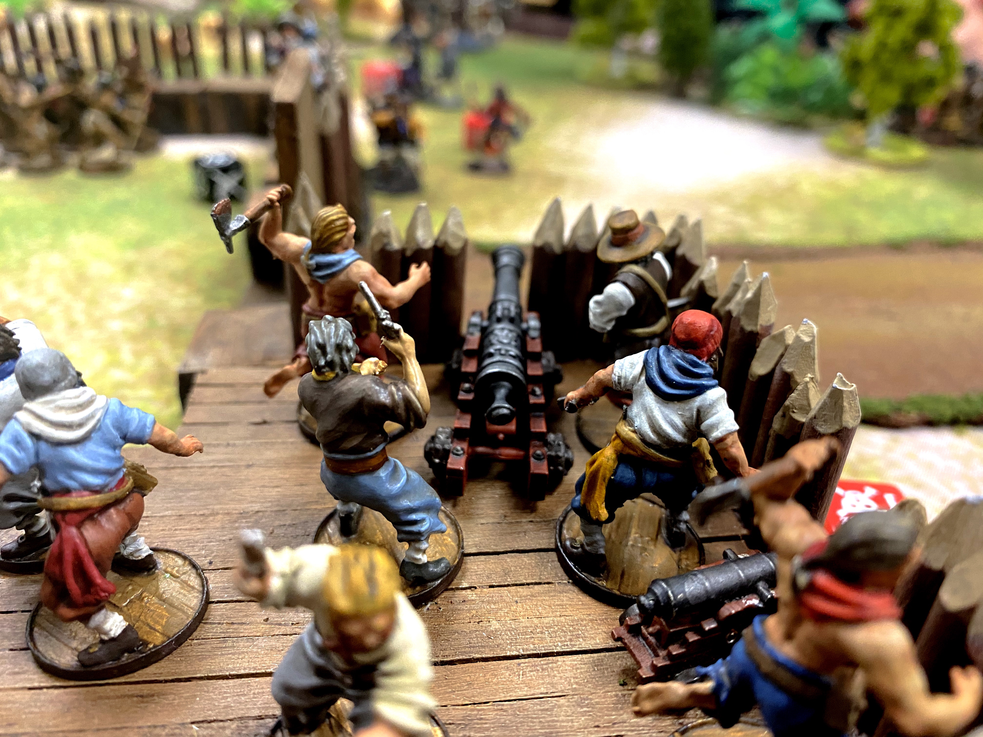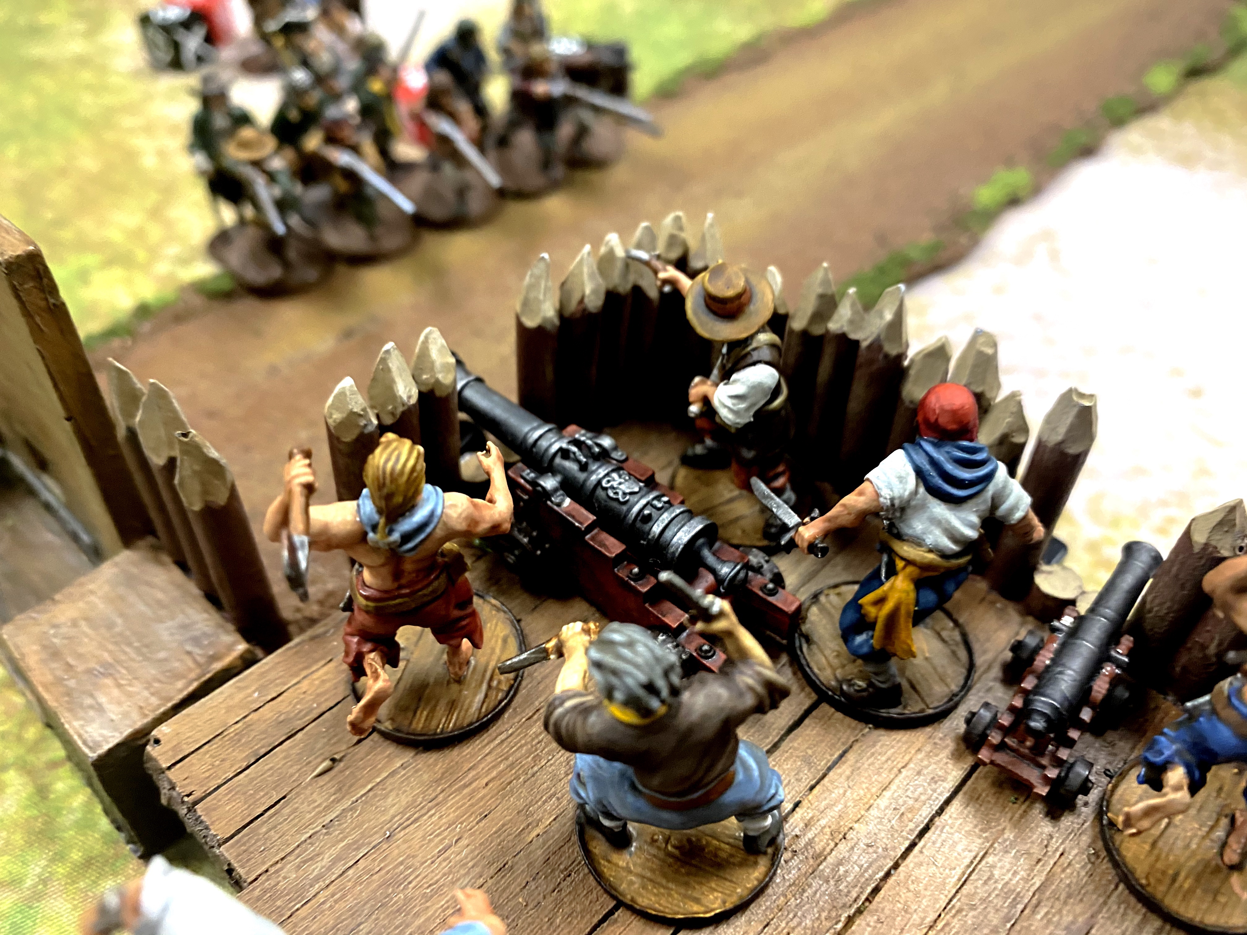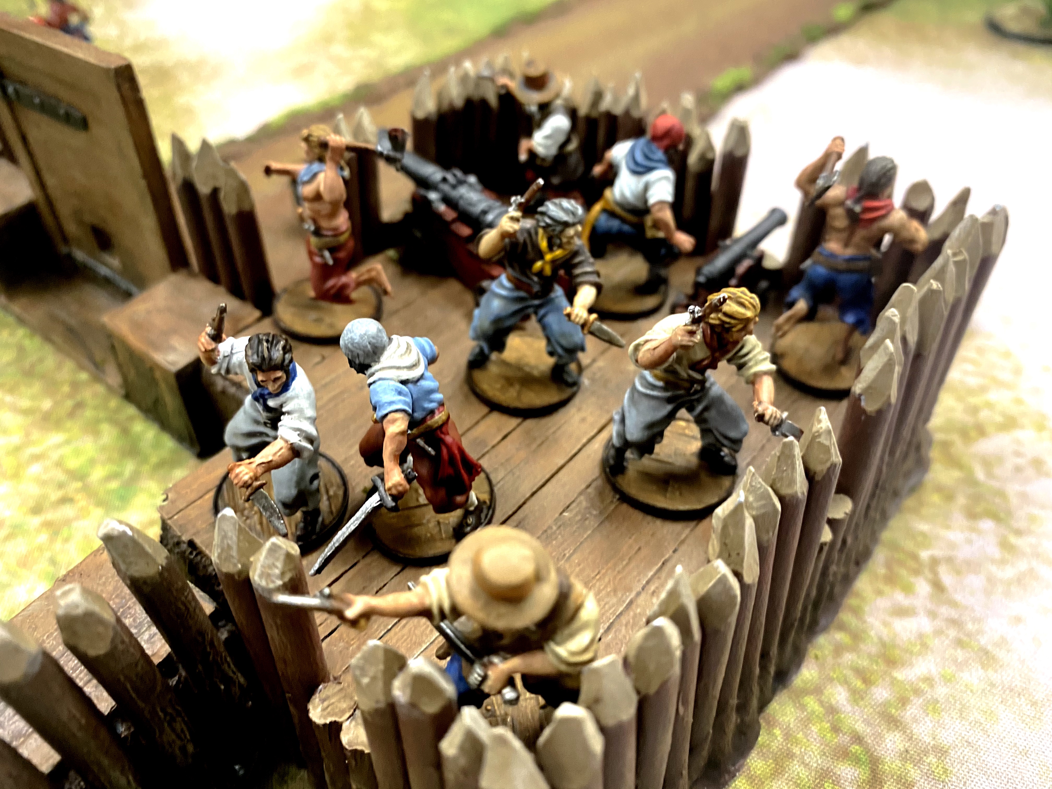 - I think I could have saved some points by making my fort smaller. I used two wall sections between corners/bastions but I didn’t really need all that space for this size of game. I think I could have done with with a single wall section between corners and that would have saved me 12 points which I could have used to buy more Freebooters for my command unit! You don’t really need a huge fort unless you’re playing 400+ points and even then, larger doesn’t necessarily mean better. If you heave enough units to man all the walls, it helps bring more guns to bear on the enemy, but in this case, I had more walls than men which just gave opportunities for the enemy to climb an undefended portion of the palisade.