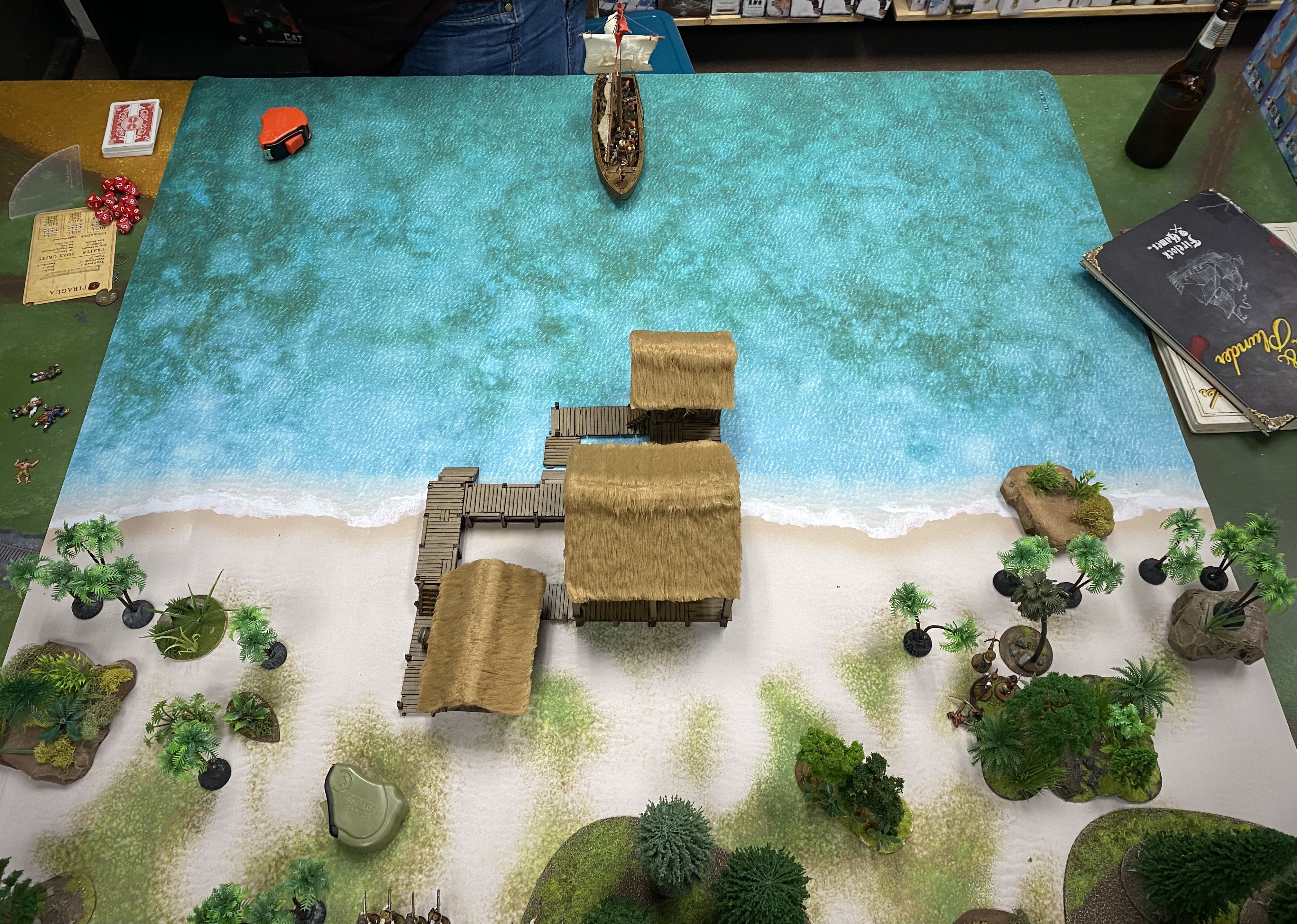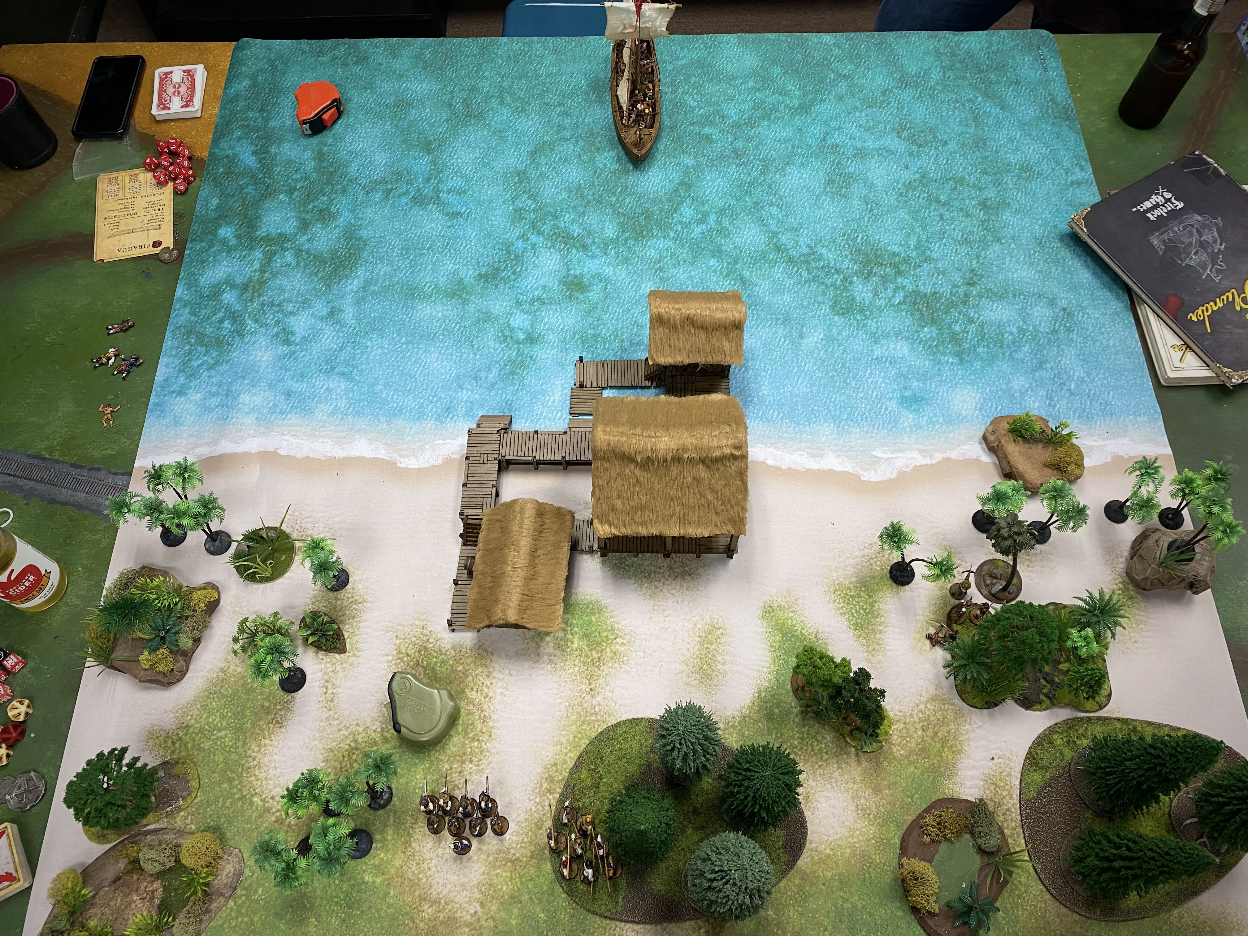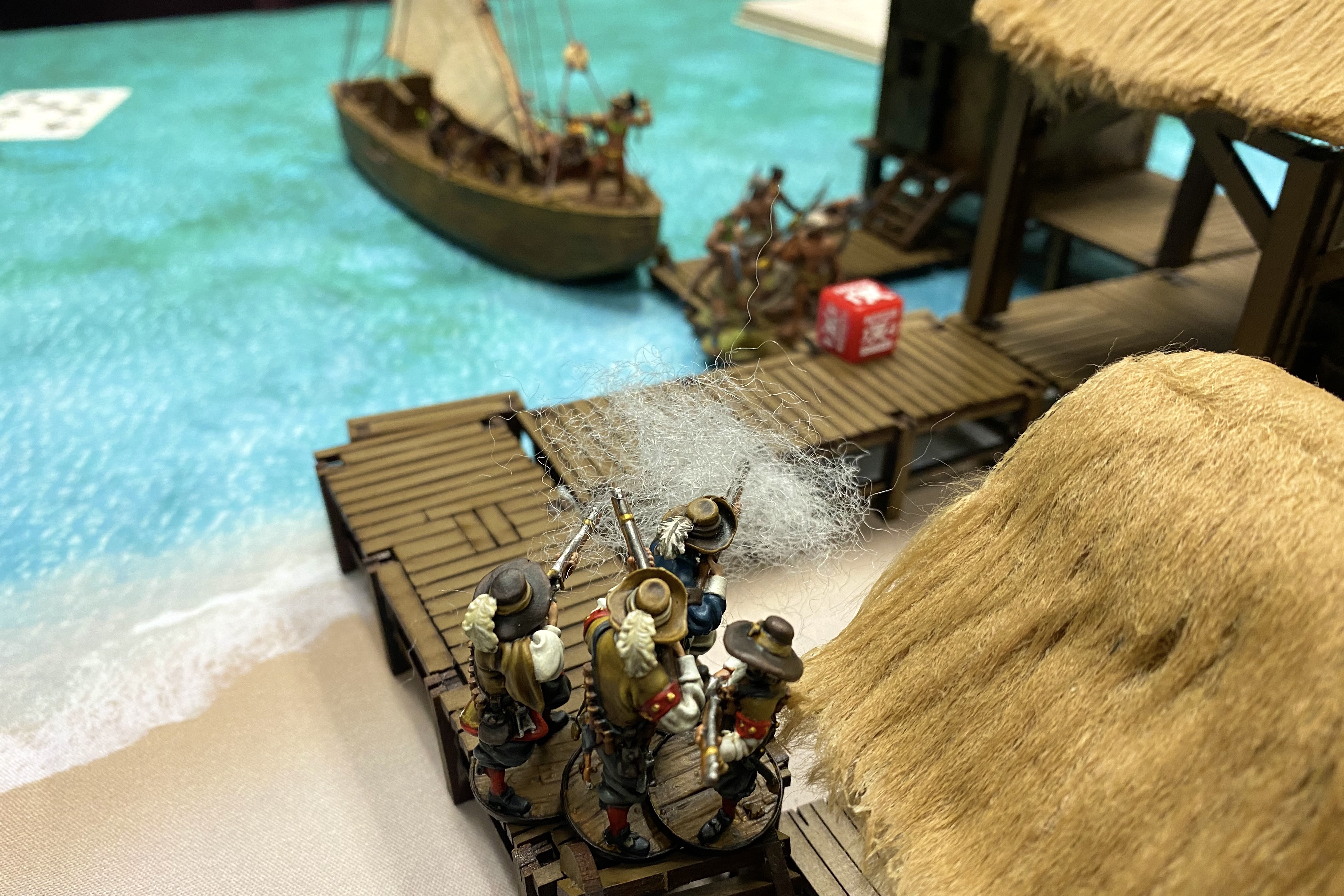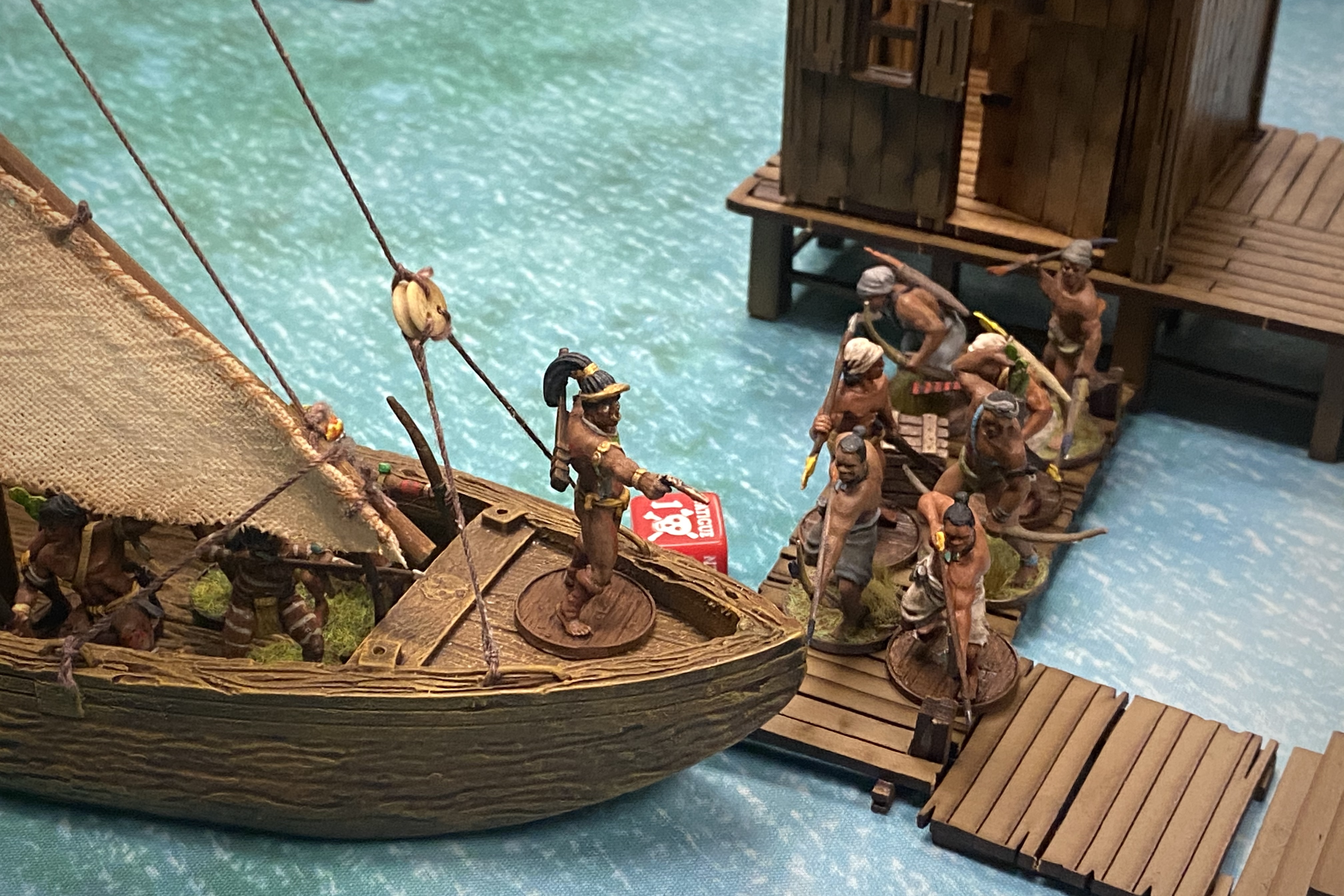 - I felt this game could have swung the other way if the Natives had pushed off and left the dock on turn 5 instead of shooting at my oncoming men. If the Piragua had moved away, I couldn’t have charged and with only Marineros with pistols close enough to shoot at them, they probably would have escape with one of the objectives and it would have been a very closer game. Keeping Lanceros at a distance is always a good thing.