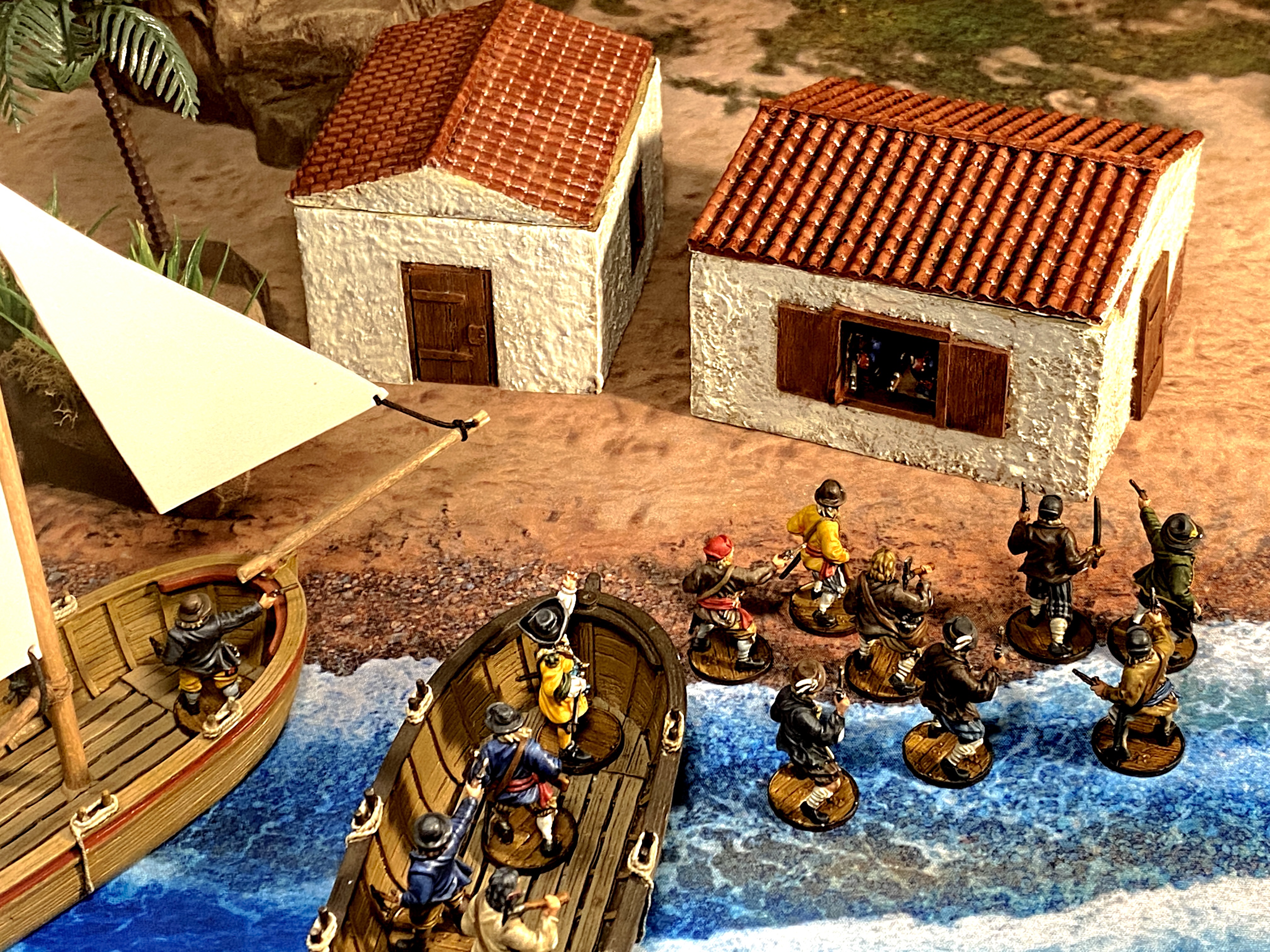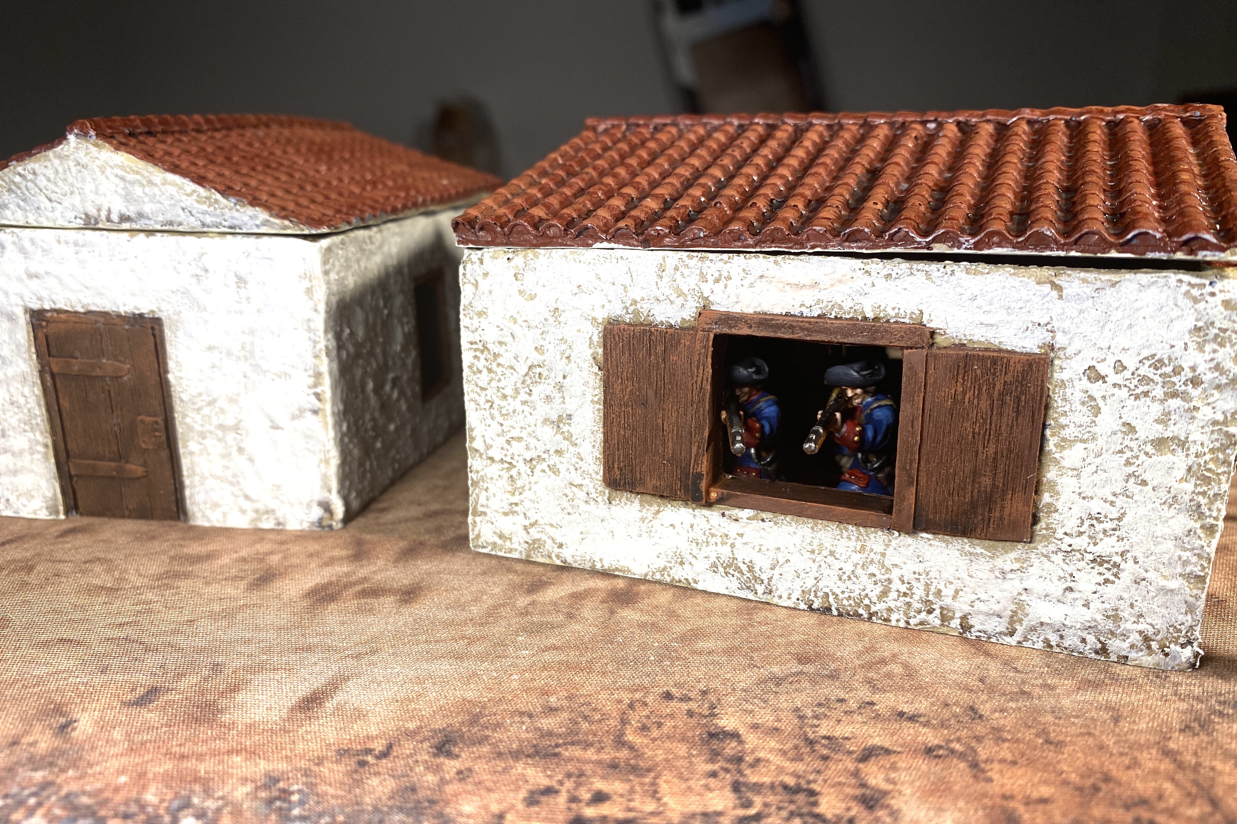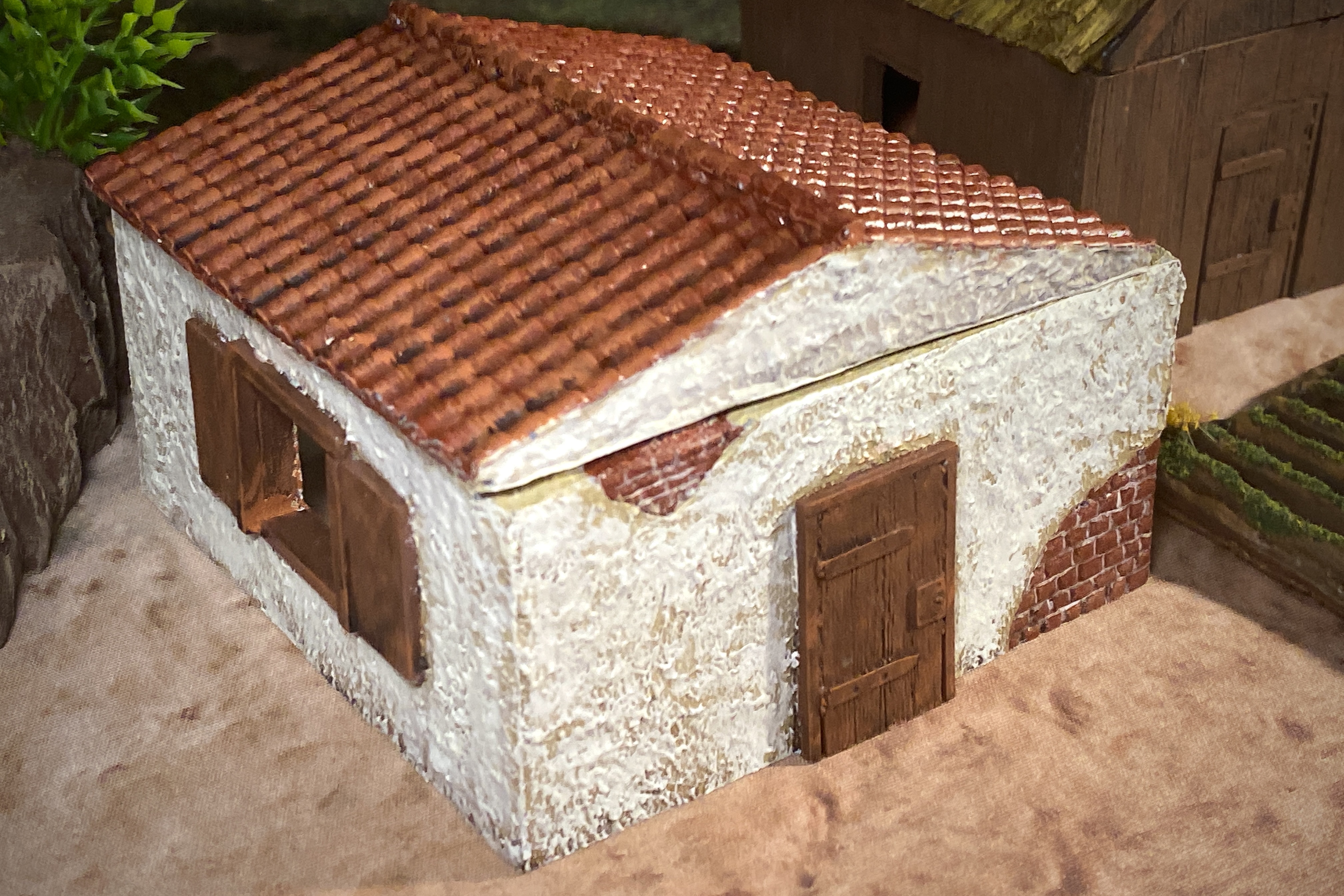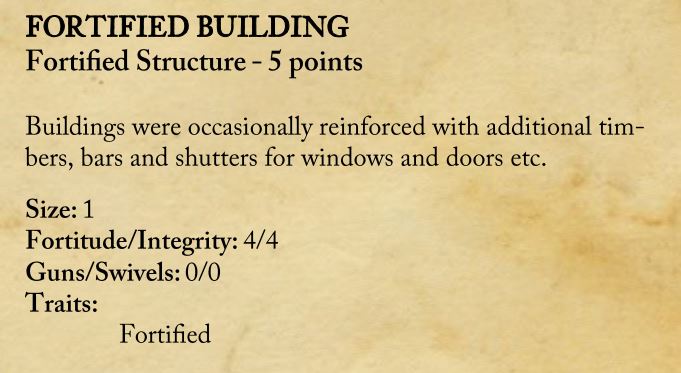 This structure is exactly 4″ square (just how a structure should be in Blood & Plunder!), has a large window on 3 sides and a door on the fourth side.