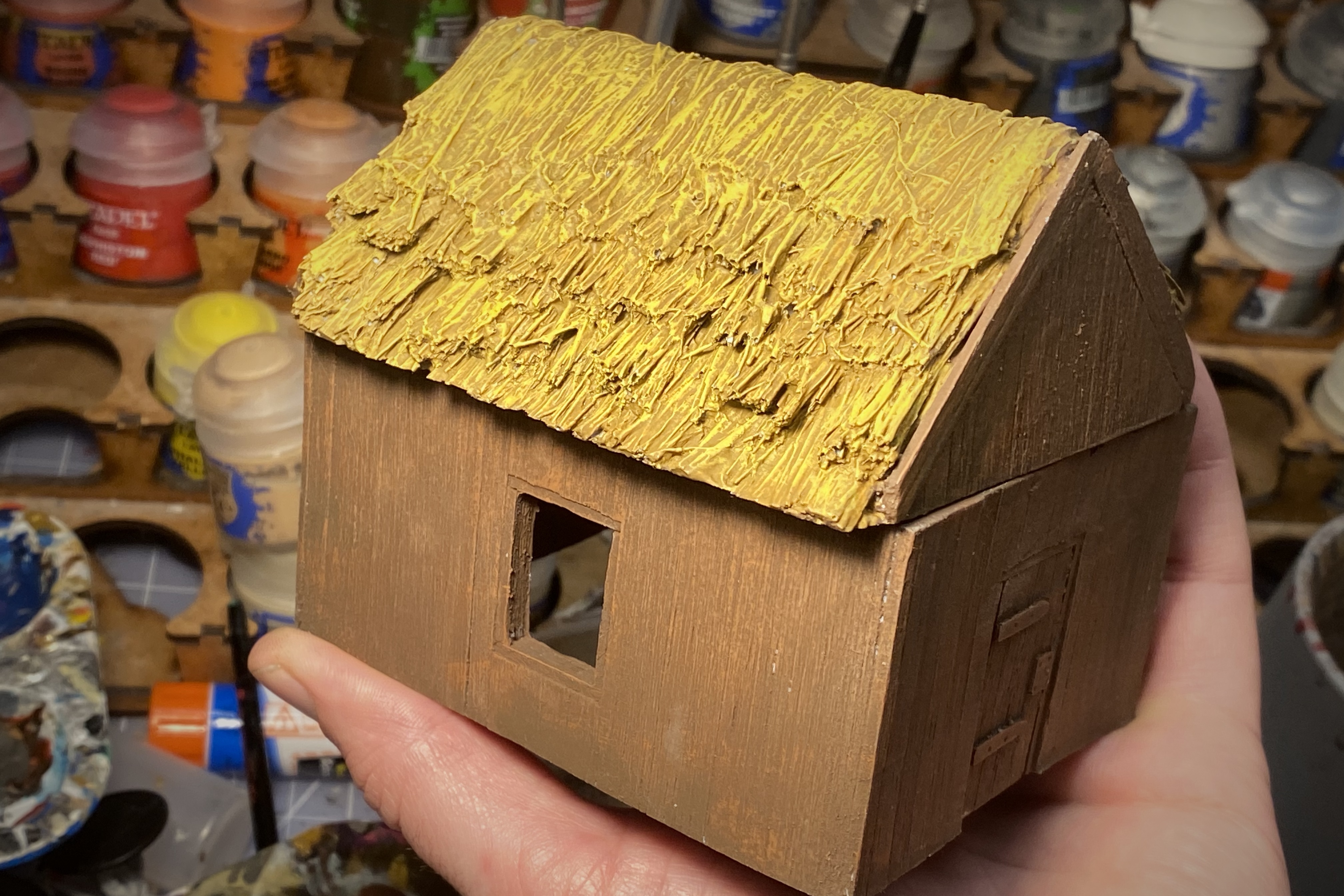 I found this one a little harder to paint since the texture is so deep in the thatch. It was difficult to get paint down into all the little cracks!