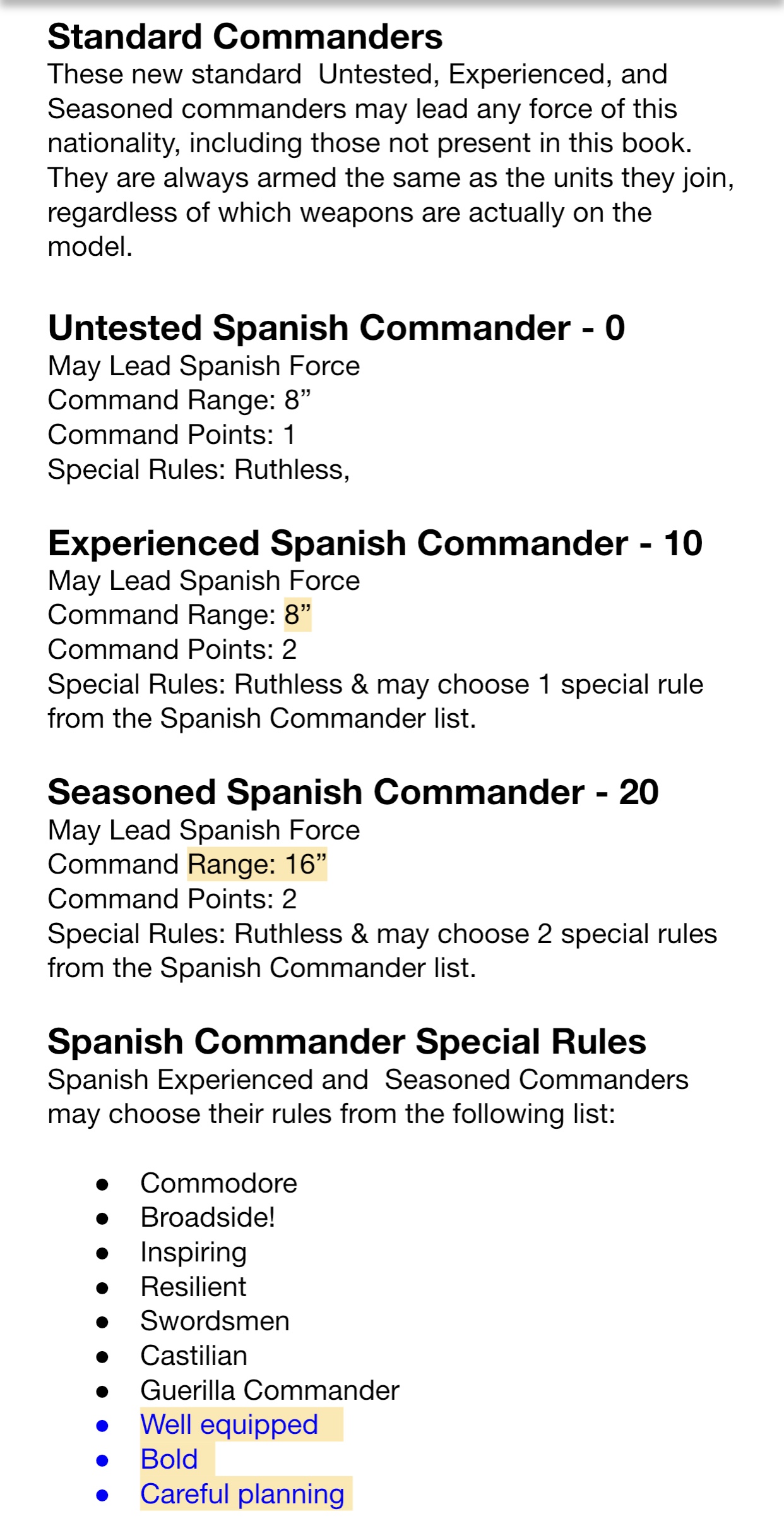 I like using a Spiritual Leader in other forces so I really enjoy getting an extra perk for using him here. I’m also pretty thrilled to get a couple new Spanish units! All three of these new units seem useful and I’m looking forward to playing them.