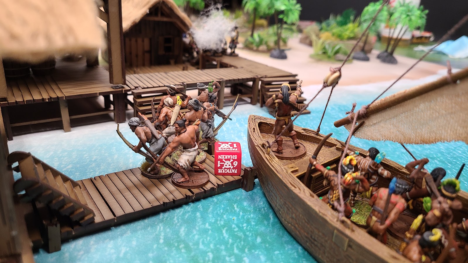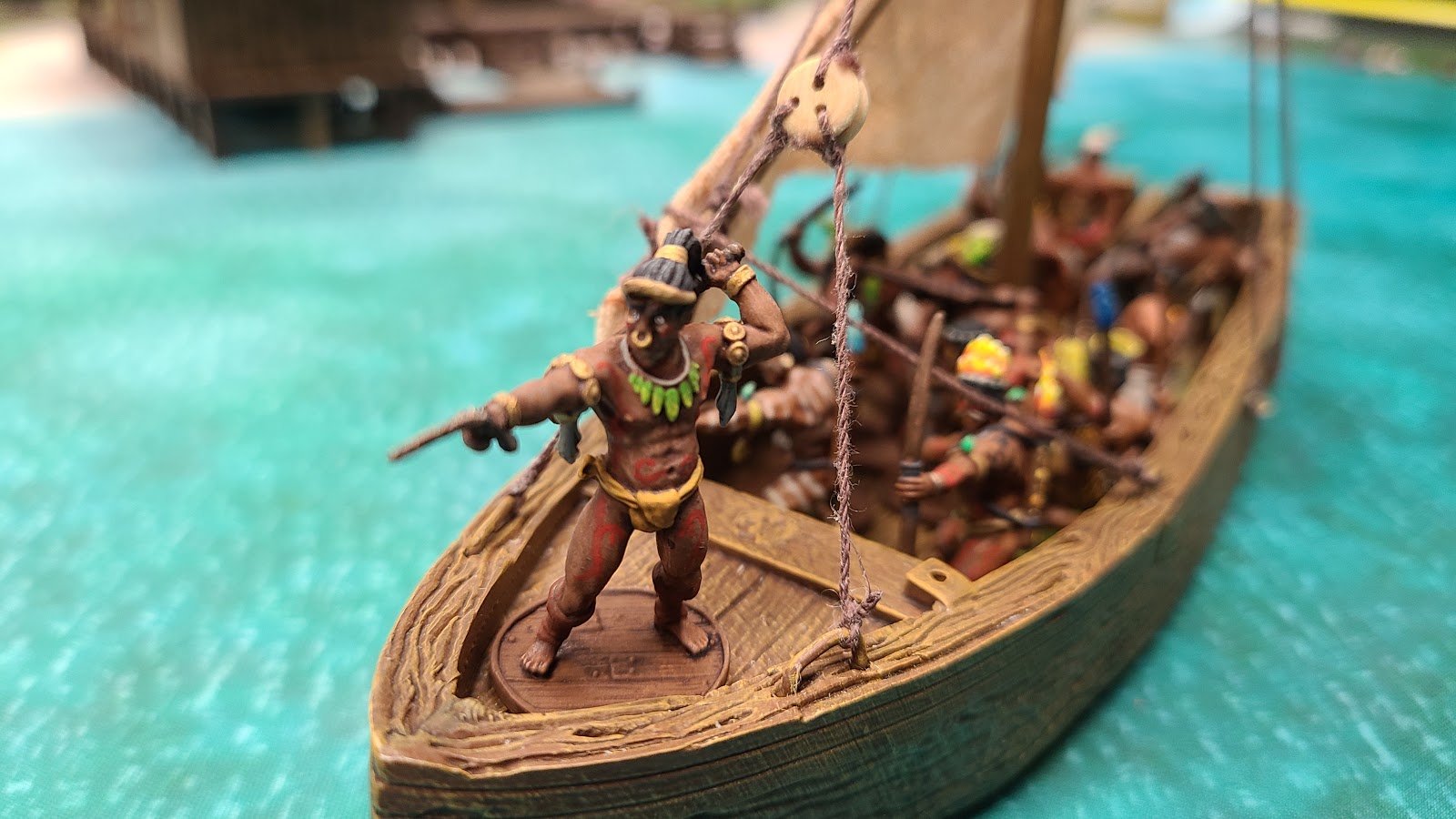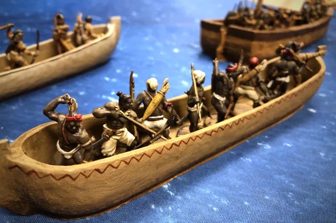 The most trouble this faction will have is in a sea game. We at Blood and Pigment have said that all Native American sea lists are boarding lists, and that is true for Black Caribs as well. They can’t fill their canoas with 4 point or 5 point models though, or use Poison Arrows. If you want to use this faction in canoes, longboats, or piraguas, they work well in an amphibious game.