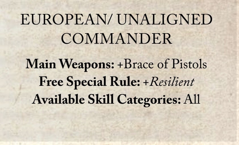 If you plan on playing through the campaign from No Peace Beyond the Line, the commander you get to create has abilities and weapons wholly different than the generic Southern Tribes commanders. This is because they are an Unaligned faction instead of a Native American faction. This lets you take the Nautical category, but locks you out of Savvy and other Native American only Special rules.