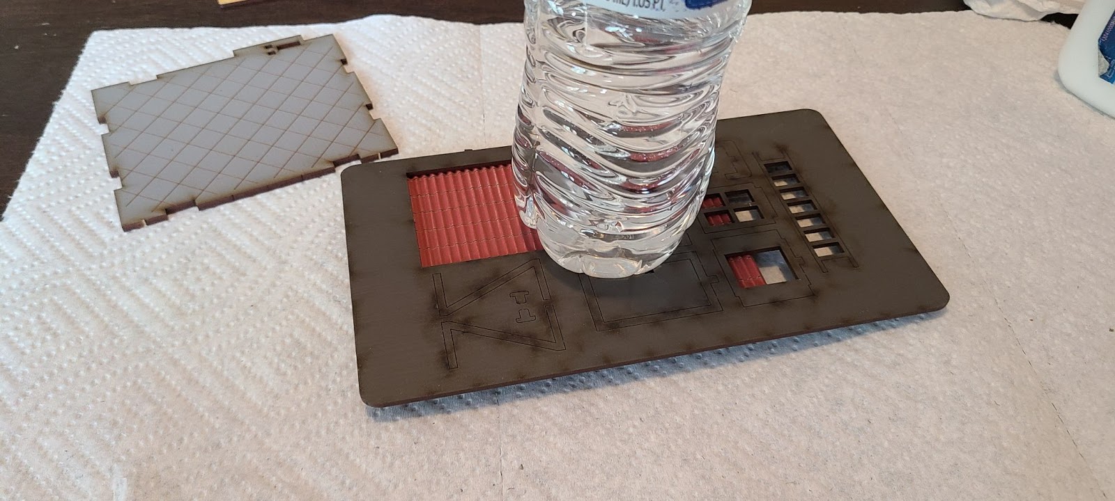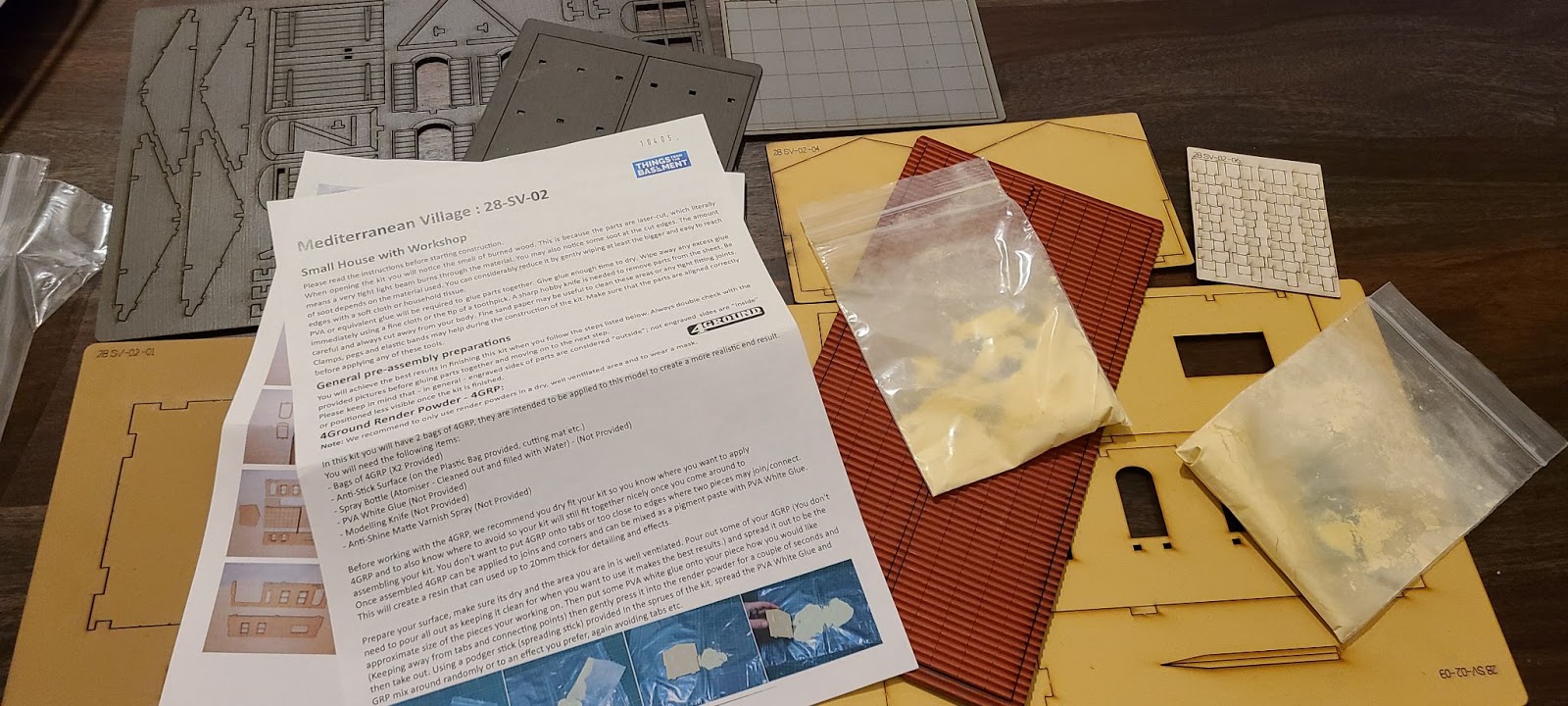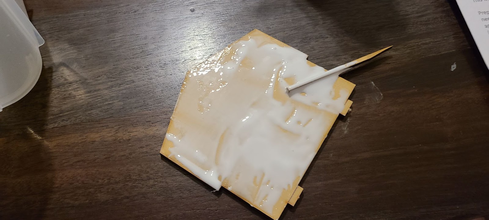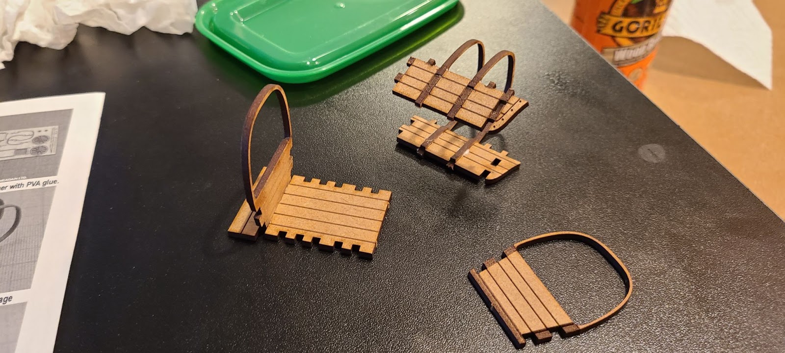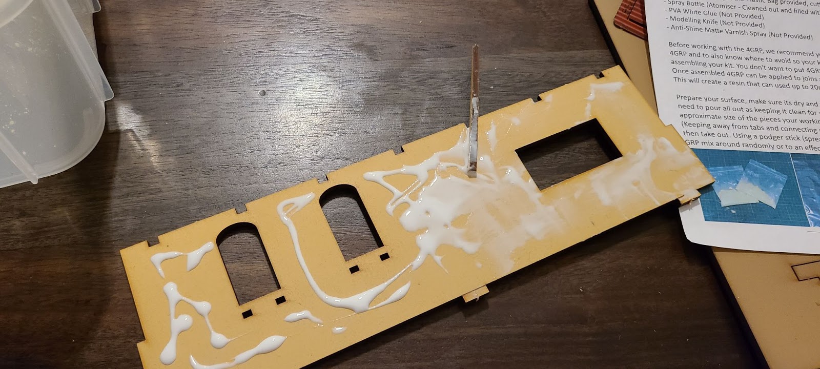 The other kits came with disposable tools to spread glue on the MDF, but the smaller kits in this collection do not have them. As a replacement I used a straight unused section.
