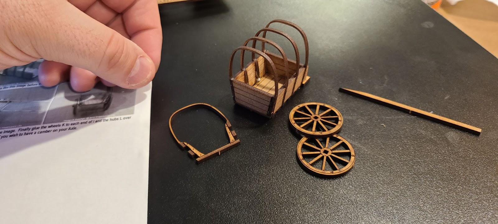 Wagons and carts have been around since the invention of the wheel. This kit is of a hand cart, and though its design makes me think of the American westward migration, it’s a simple design that I think would have been in use throughout the Spanish Empire.
