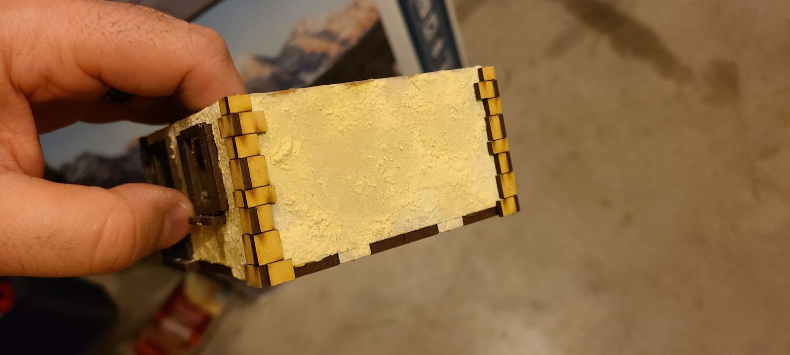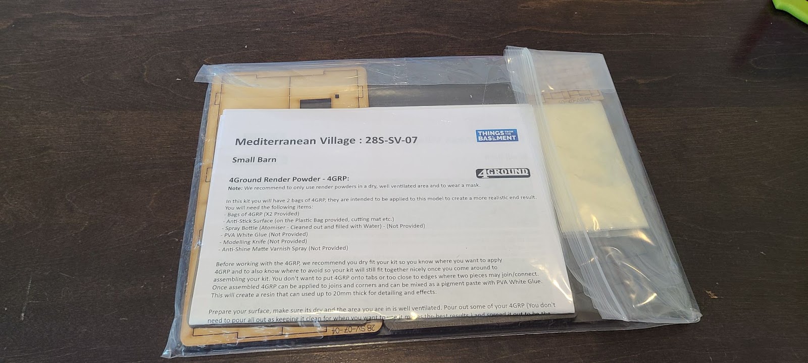 The finished project was a little bit of a learning experience for me and how 4Grounds come together. Render powder is a fine dust that gets everywhere and is very yellow. They seem to lean into the render powder dusting that the brown and red parts might get while handling in their product pictures. Frequently washing my hands helped in latter kits. The only other thing I don’t like about this kit is that the attached workshop reminds me of a garage.