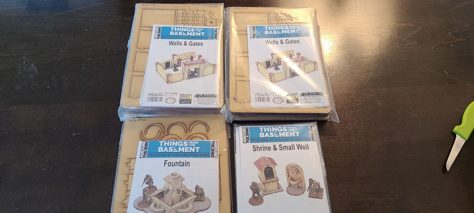 After my last experiences building 4Ground Publishing’s terrain, notably the Treadwheel Crane, I was eager to build some more. My terrain collection is mostly from Gale force 9, and my own crafted woodland terrain, and sorely lacked buildings of any sort. Luckily, 4Ground sent bloodandpigment.com some of their terrain to try out. I choose pieces from the Mediterranean Village series to build, play, and write about. I’ll take you through my experiences building these, how they feel to play with, and end with a review of each piece.
