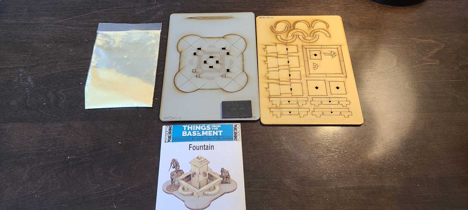 While the render powder dried, I opened up the large fountain. While it does come with render powder, the large tan pieces also look like tiles, so I choose to omit the render powder for the fountain.