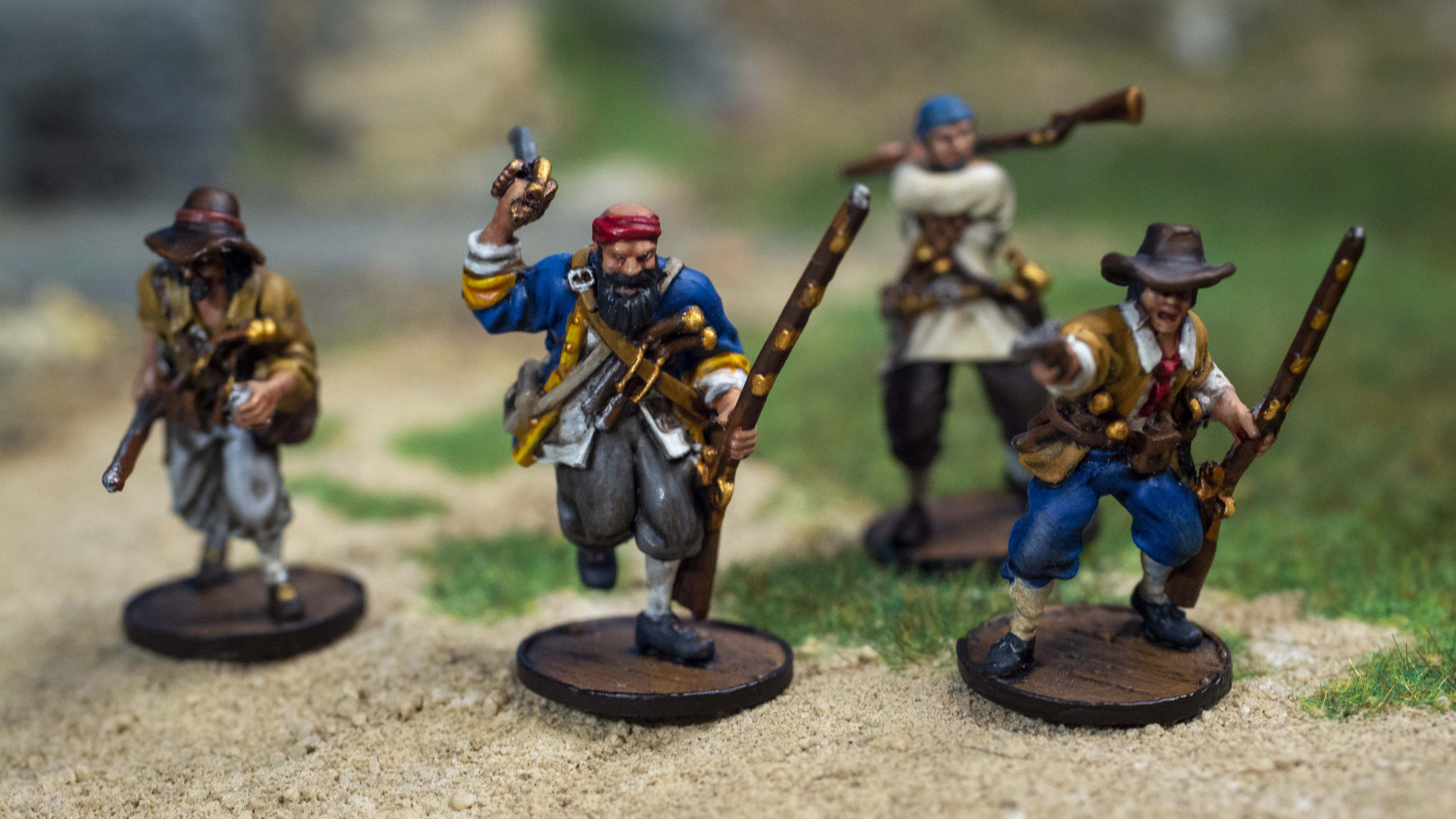 This list relies on English Militia to get up to that 32 model mark. But it uses a solid unit of 8 Veteran Boucaniers which lay down murderous fire every single turn.