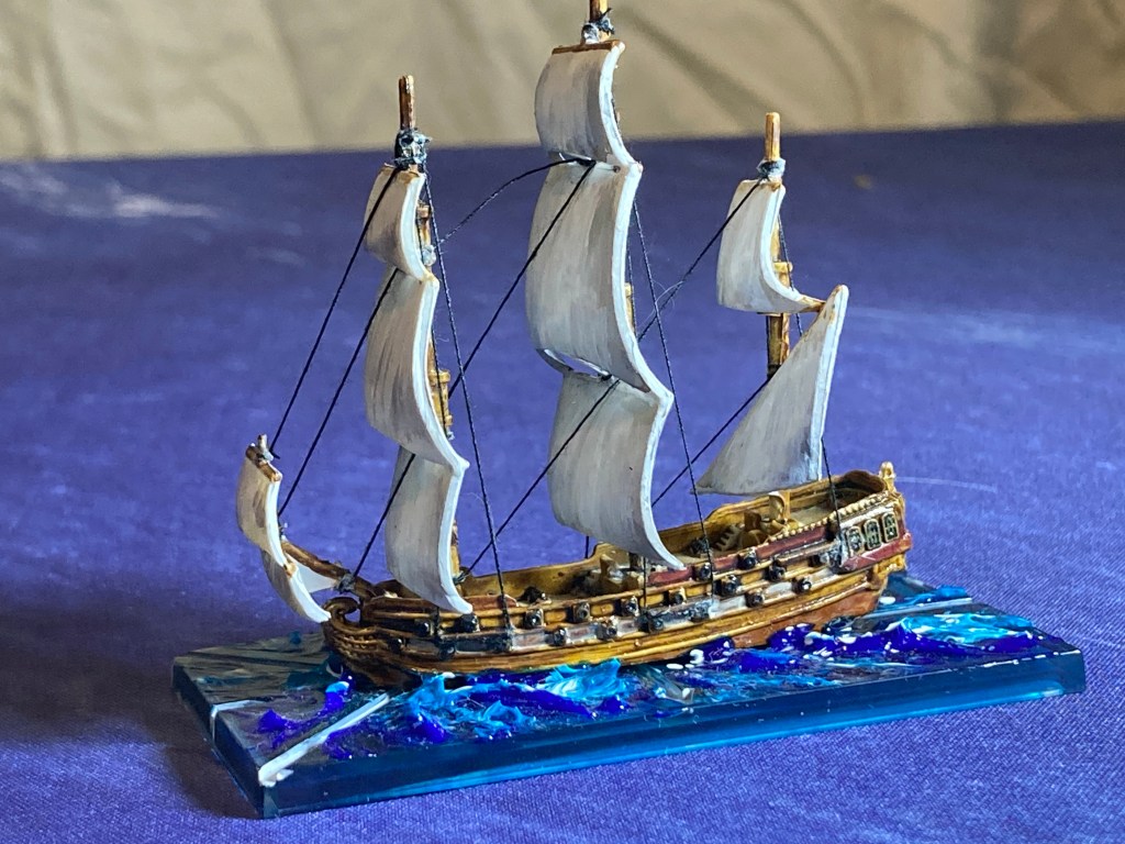 One of the standout entries by a relatively new painter was this Bermuda Slop & crew by Robert McFarland. Robert is new to Blood & Plunder and new to painting but he seems to be off to a great start! Welcome to the game and nice job on your ship and crew! Robert noted that the sails on this Bermuda Sloop are from Rick Casler.