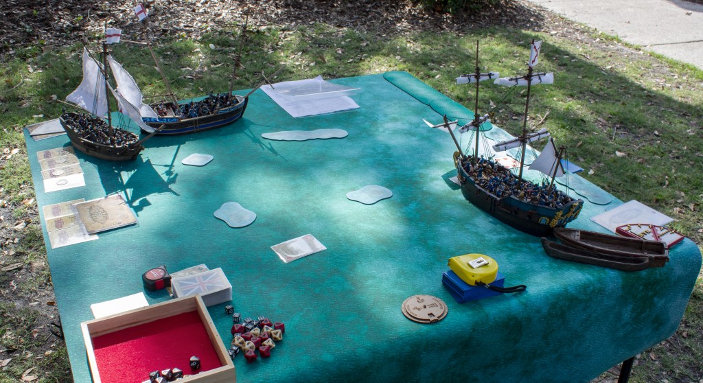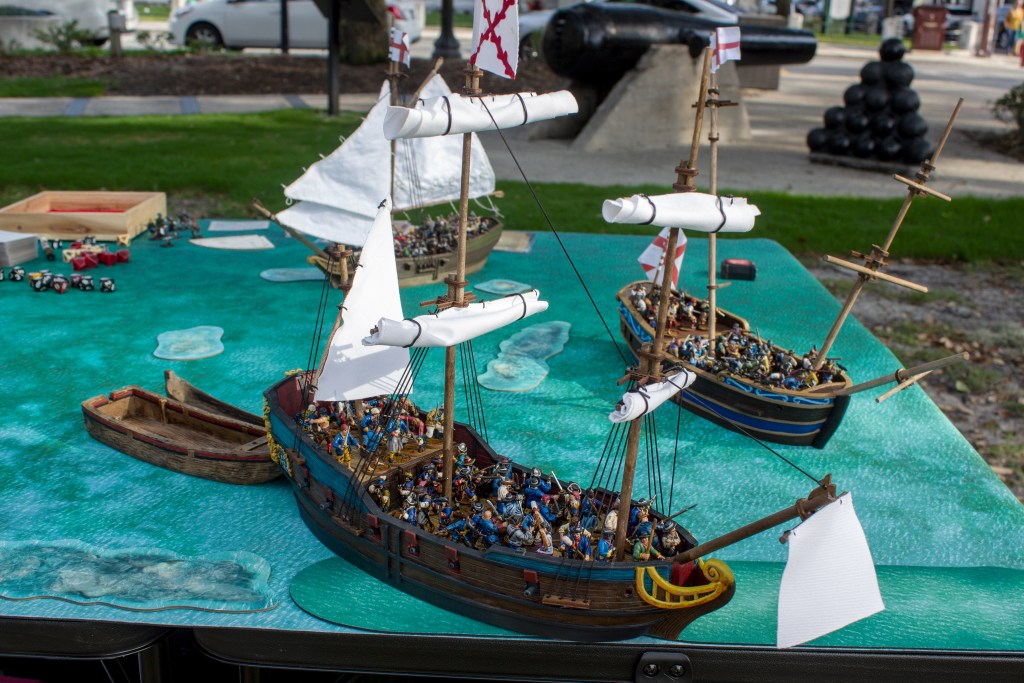 Overall, we had a fantastic time playing Blood & Plunder at St. Augustine’s History Festival. The weather was great and everything worked out really well. We were able to show the game to people who would probably never step foot in a game store or convention and even to a tabletop gaming couple who had never heard of Blood & Plunder. My goal from the start was to be able to play this great game in a very picturesque environment and connect my ships and little metal/plastic men to the history they represent.