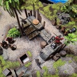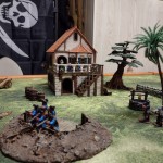 The objective for week 3 is all about limited visibility. For your Blood & Plunder games you need to either use the Night Limited Visibility rules, or use the Caught Unaware scenario rule. Night limits basic visibility to 12”, with structures visible at 24”. Torches, and lit matchlocks can make things a little more interesting as well, but overall, it encourages players to get up close rather than sit back a snipe at each other.