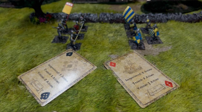 Blood & Crowns uses the same playing card-driven initiative system as Blood & Plunder. There is a minor change in that if you win the Initiative, you can actually pass and allow your opponent to go first. This is particularly useful at the start of the game when you need your opponent to close the distance and get in range.