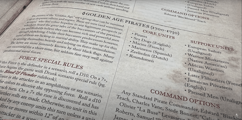 It is also important to make sure you are familiar with the latest Errata for the game or your forces. Errata are the updates/rule changes that have released since the rulebooks were first published. You can get the latest errata from Firelock Games on the DLC page under the Blood & Plunder Section and Resources Subsection.