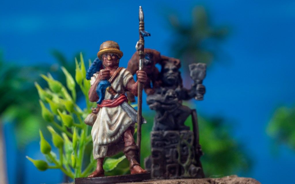 If you’re able to pick up a Monkey Statue this month, you may want some inspiration for painting your epic new mini! The statue is inspired by surviving stone carvings from Honduras. Light stone with weathering effects would be appropriate, but remember, the stone wouldn’t have been as old and weathered in 1680 as it appears today!