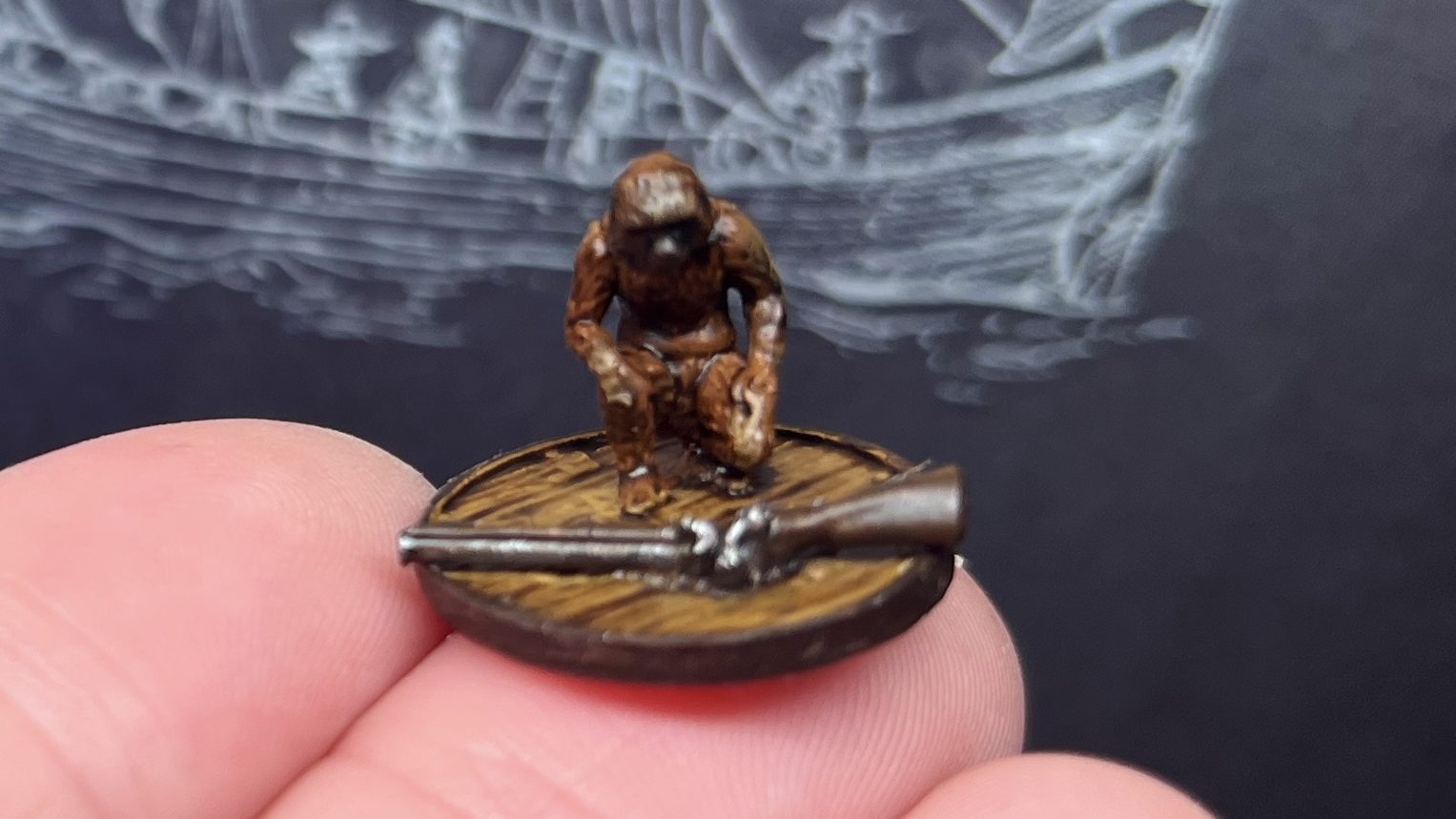 The Monkey Statue model is a great little objective marker or just fun, flavor for your Blood & Plunder board. It’s great to see it available again! Please forgive our ridiculous storytelling!