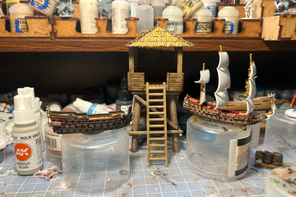 We’re well into the 2nd month of The Great Pirate Paint Off contest and it’s time for an update! This month the categories up for prizes are Oak & Iron Ships and Terrain. In addition to these two categories, our friend Dexter at the Plunder Den is running a related “Flash Terrain Challenge” for some plains Indian teepees.