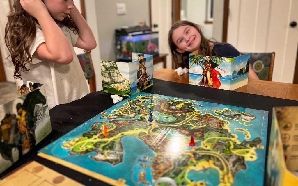 This game is a ton of fun. There’s deception, there’s unpleasant but necessary cooperation, there’s many opportunities to read all of the other players, there’s the unusual opportunity to draw all over your gameboard and mini map, and there’s the fun of the pirate theme.