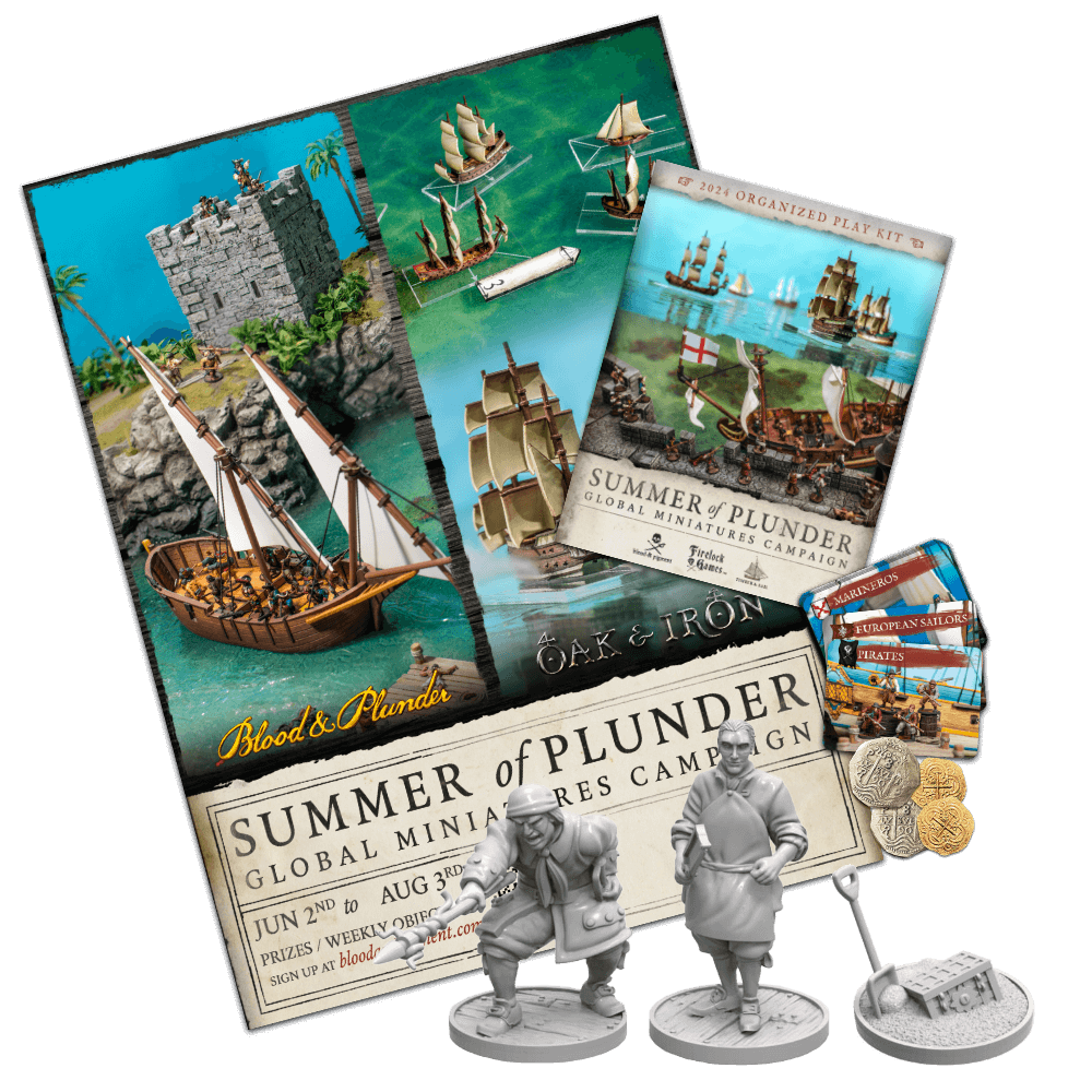 There’s lot going on for Blood & Plunder and Oak & Iron player during the Summer of Plunder campaign. If these shared objectives look fun to you, jump on in and work towards fulfilling a different objective every week you are able to play during the summer. But again, these are optional and not necessary to strictly follow. The goal is to help you all have fun getting some pirate games in with friends and sharing that with the Firelock Games community over this summer!