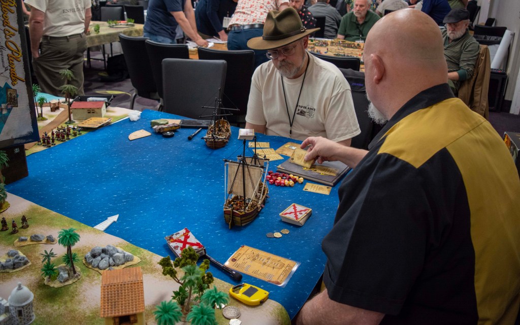 The “historical gaming” crowd has a unique approach to convention gaming that seems to focus on simpler rulesets customized/streamlined for easy play for large scenarios. Blood & Plunder doesn’t exactly perfectly fit into that mold, and this event kind of helped me understand how different Blood & Plunder is compared to most “historical games.”