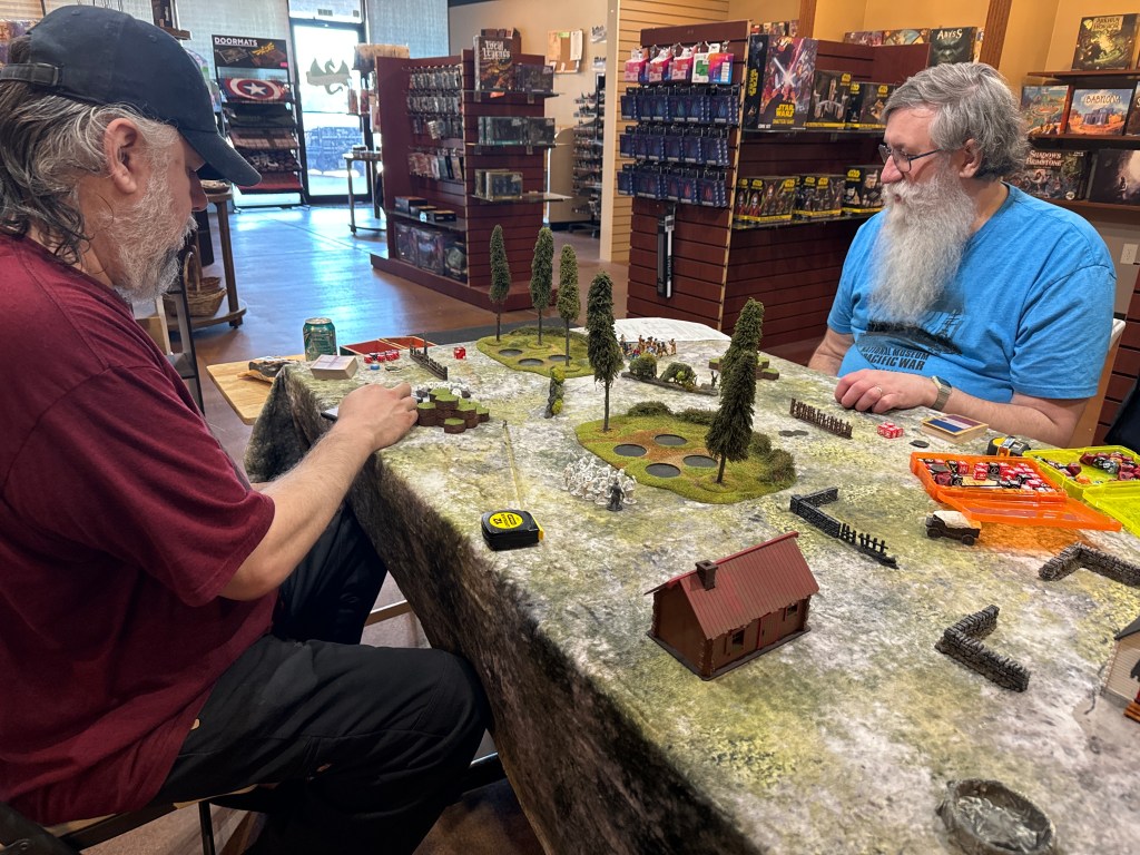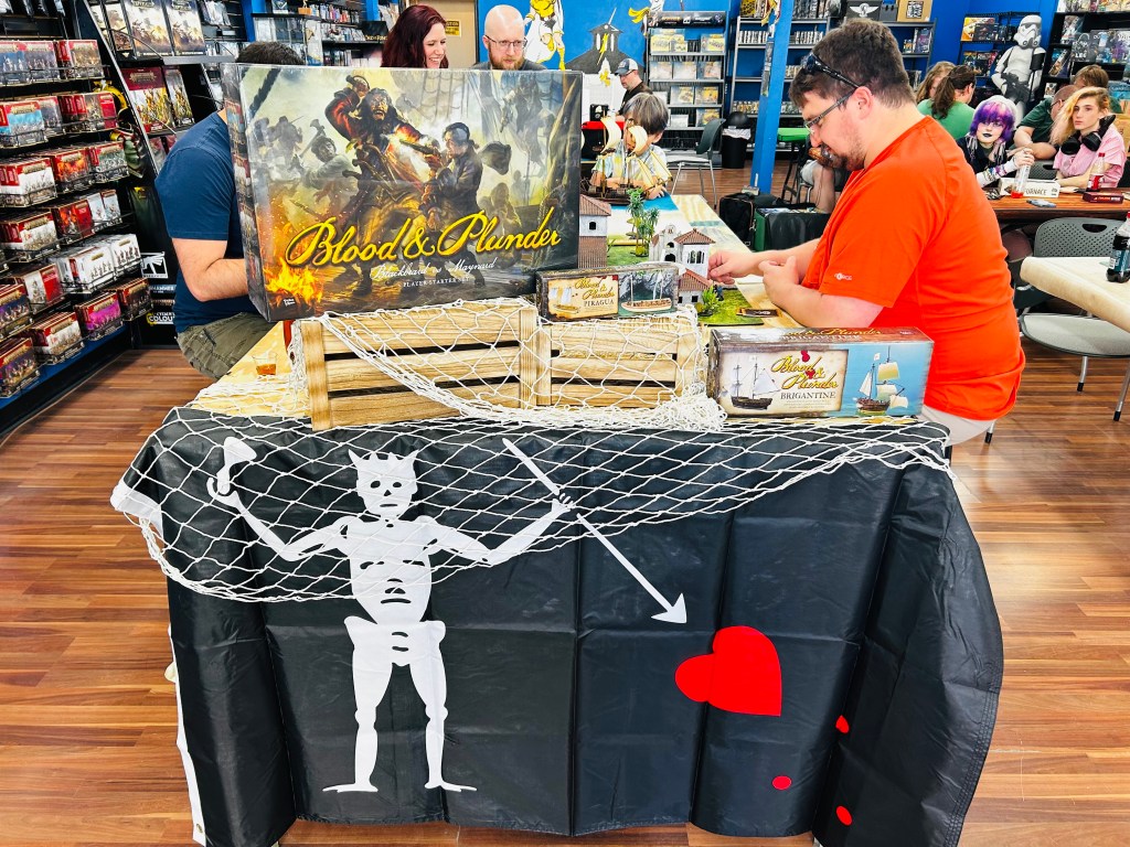 We’ve seen a GREAT uptick in games happening at local gaming stores! If you have a game store close by that is able to host your game meetups, it’s great for publicity! It helps get the game in front of more eyes, and it lets your game store owner know that people are playing Blood & Plunder and Oak & Iron so they can stock the games and make them available to more people!