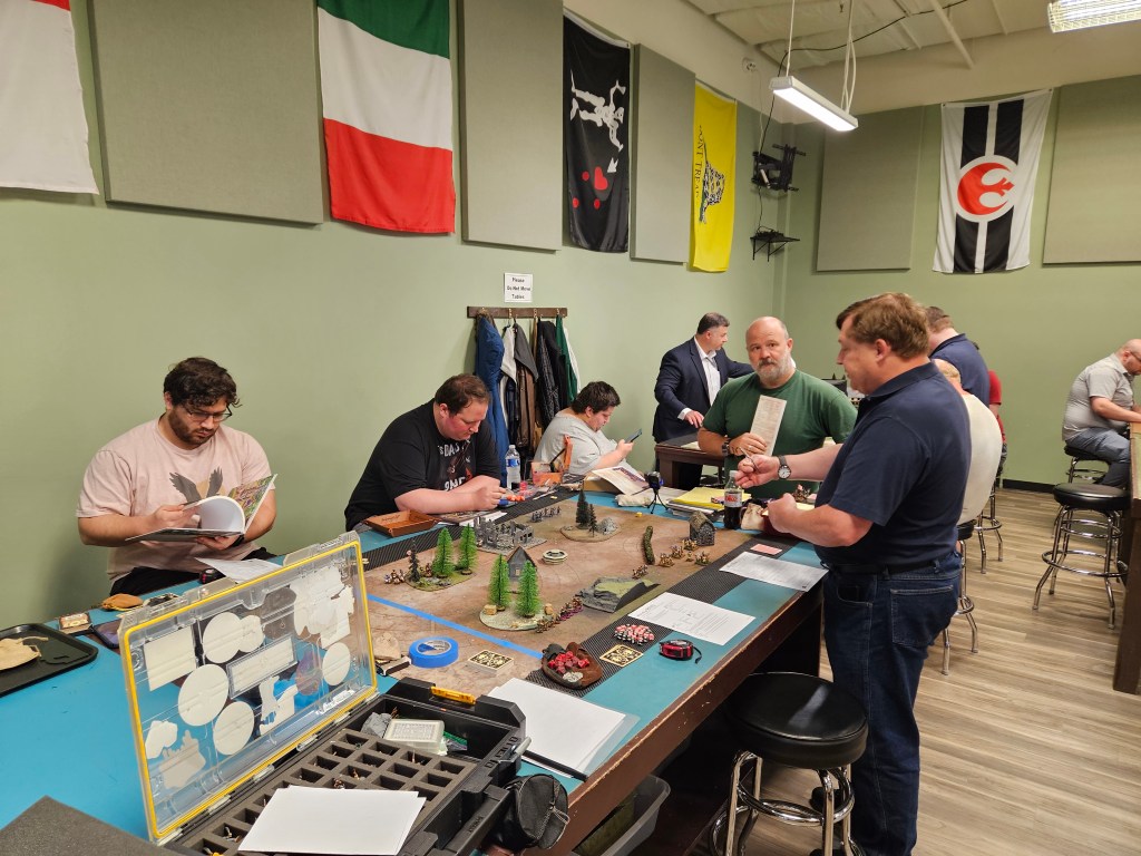 The objective was intended to serve as a demo game or opportunity for players to knock some rust off if they hadn’t played in a while, it was fun to see the different directions people went with this. Some groups did larger games with 3v3, bringing the point total up to past 200!