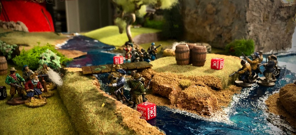It warms me heart to see the “Black” fly…if you have any ships in play…add a pirate-esk flag or two. If you don’t have any, check out the Firelock Games web page for some freebies: https://www.firelockgames.com/pages/downloads/#1583942497386-d6787fcb-bcca